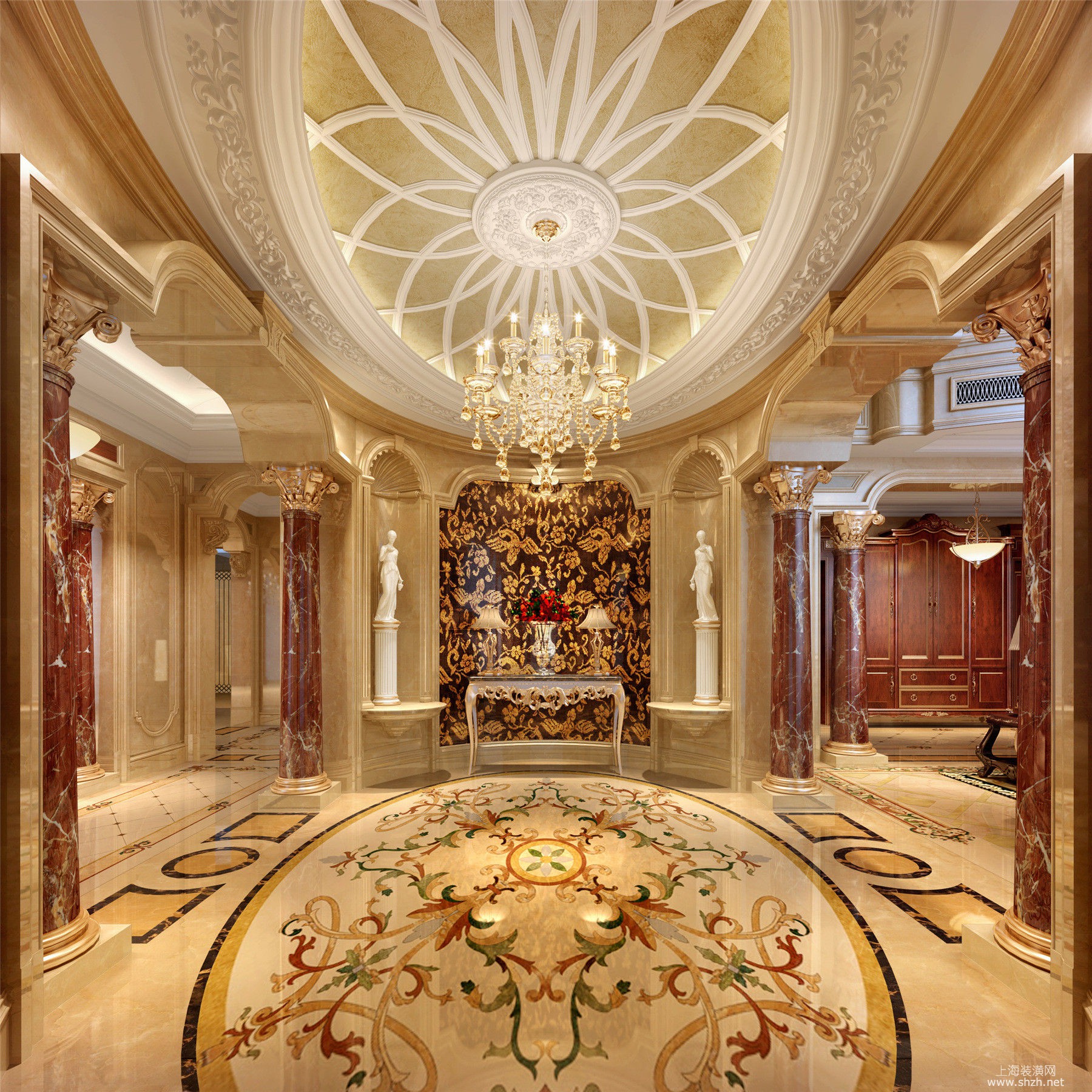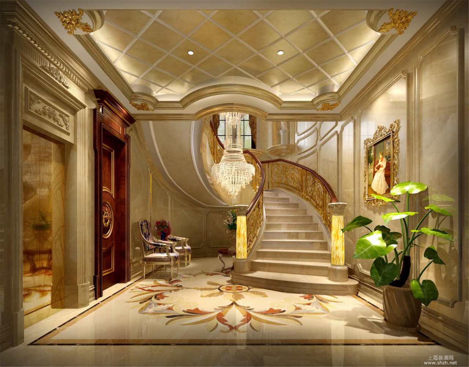 1门厅.jpg - 绿城玫瑰园别墅项目装修欧式古典你风格更设计方案展示,上海腾龙别墅设计师郭建作品,欢迎品鉴