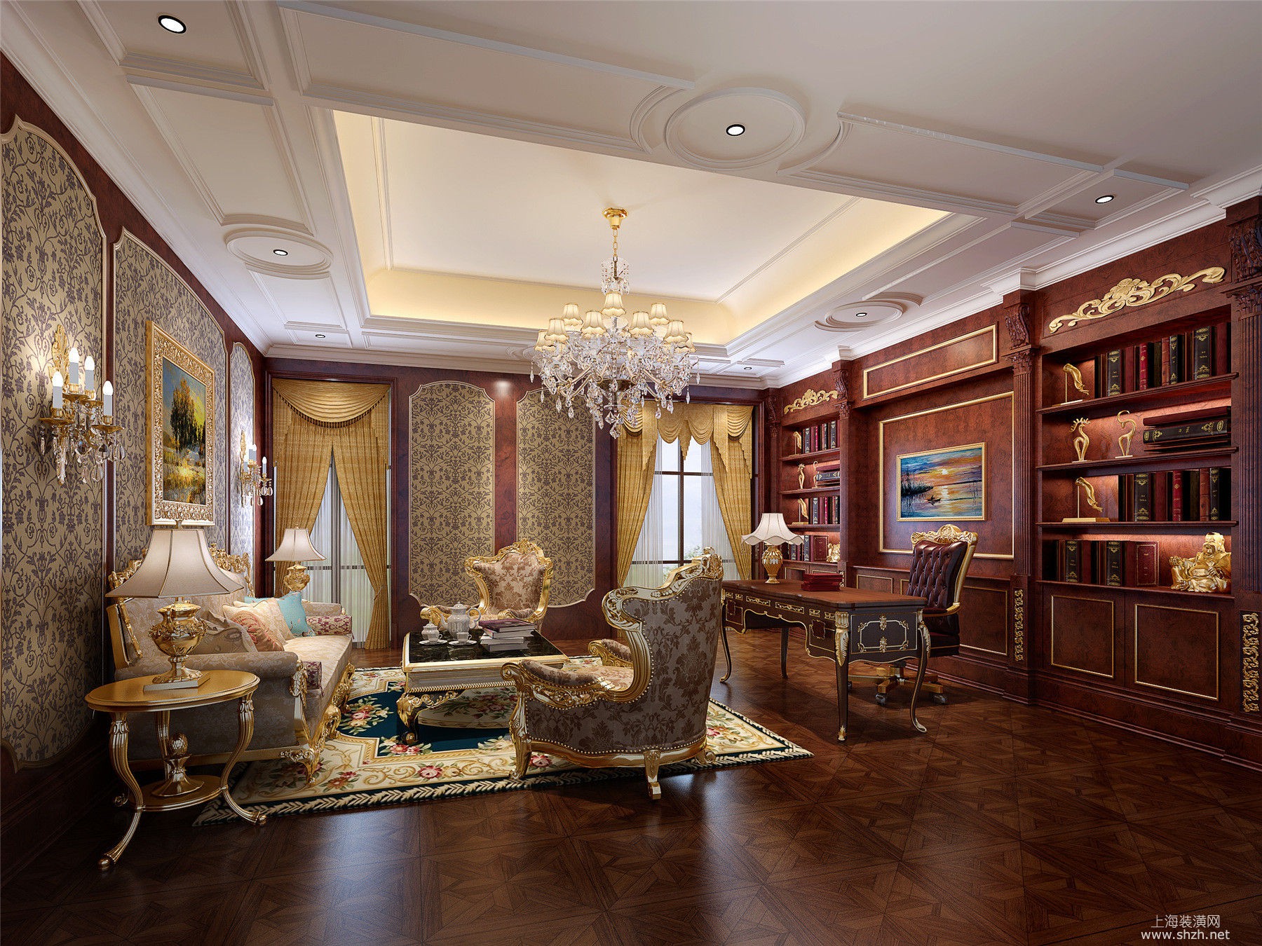 10三层书房.jpg - 绿城玫瑰园别墅项目装修欧式古典你风格更设计方案展示,上海腾龙别墅设计师郭建作品,欢迎品鉴