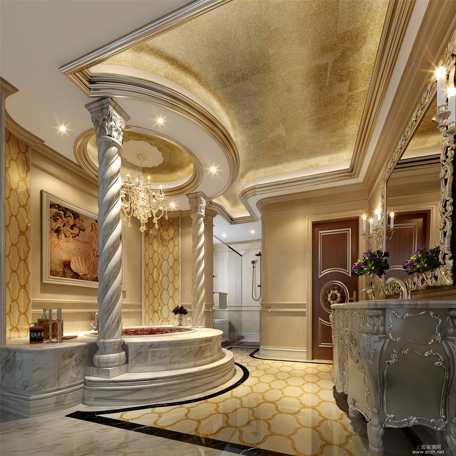 11三层主卧卫生间.jpg - 绿城玫瑰园别墅项目装修欧式古典你风格更设计方案展示,上海腾龙别墅设计师郭建作品,欢迎品鉴