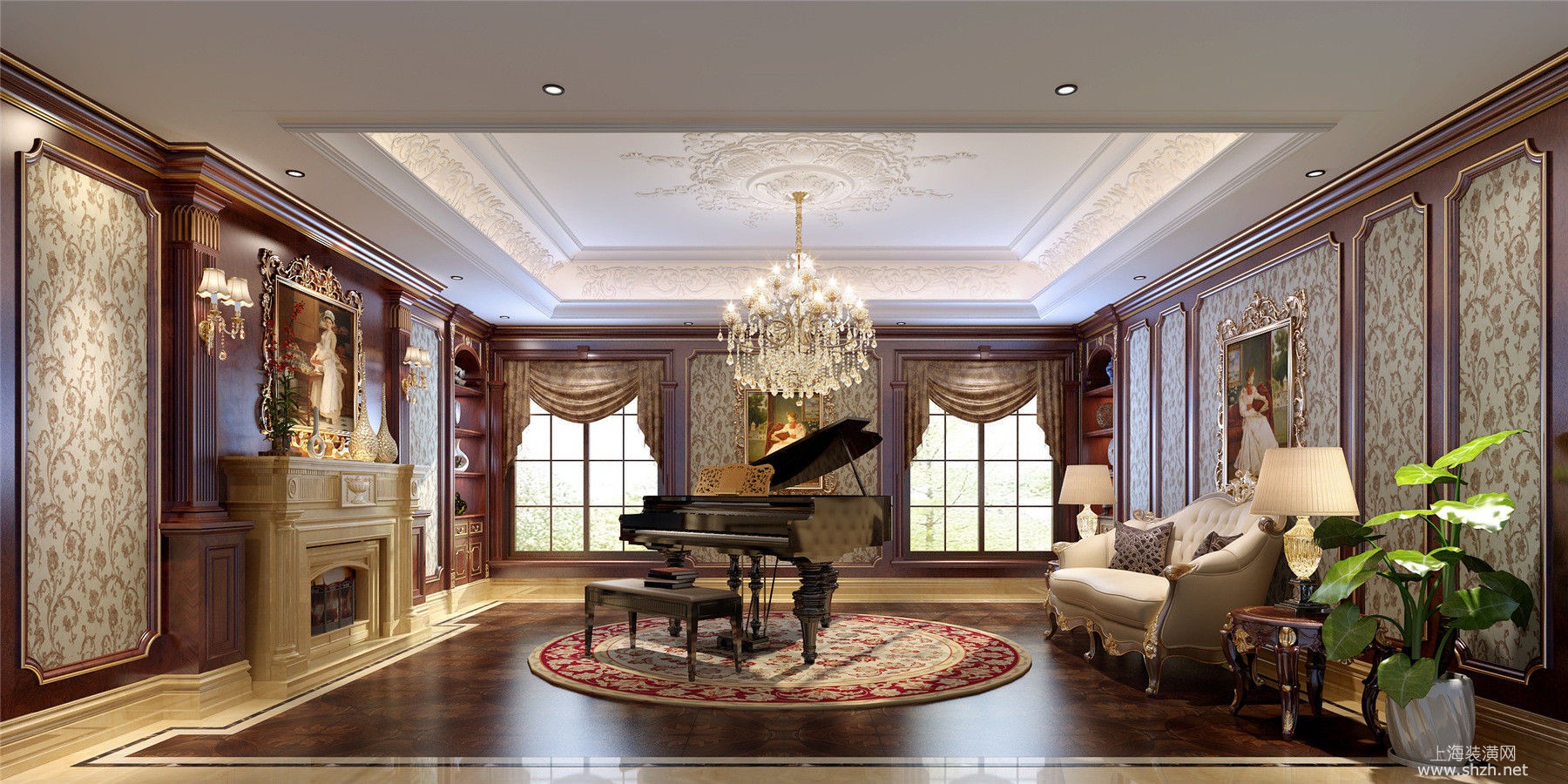 12四层琴房.jpg - 绿城玫瑰园别墅项目装修欧式古典你风格更设计方案展示,上海腾龙别墅设计师郭建作品,欢迎品鉴