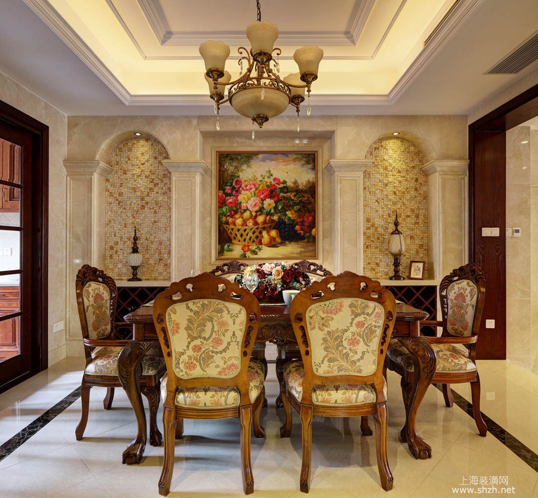 餐厅 - 别墅装修欧美古典风格设计案例展示,上海腾龙别墅设计咨询预约电话:15800615719