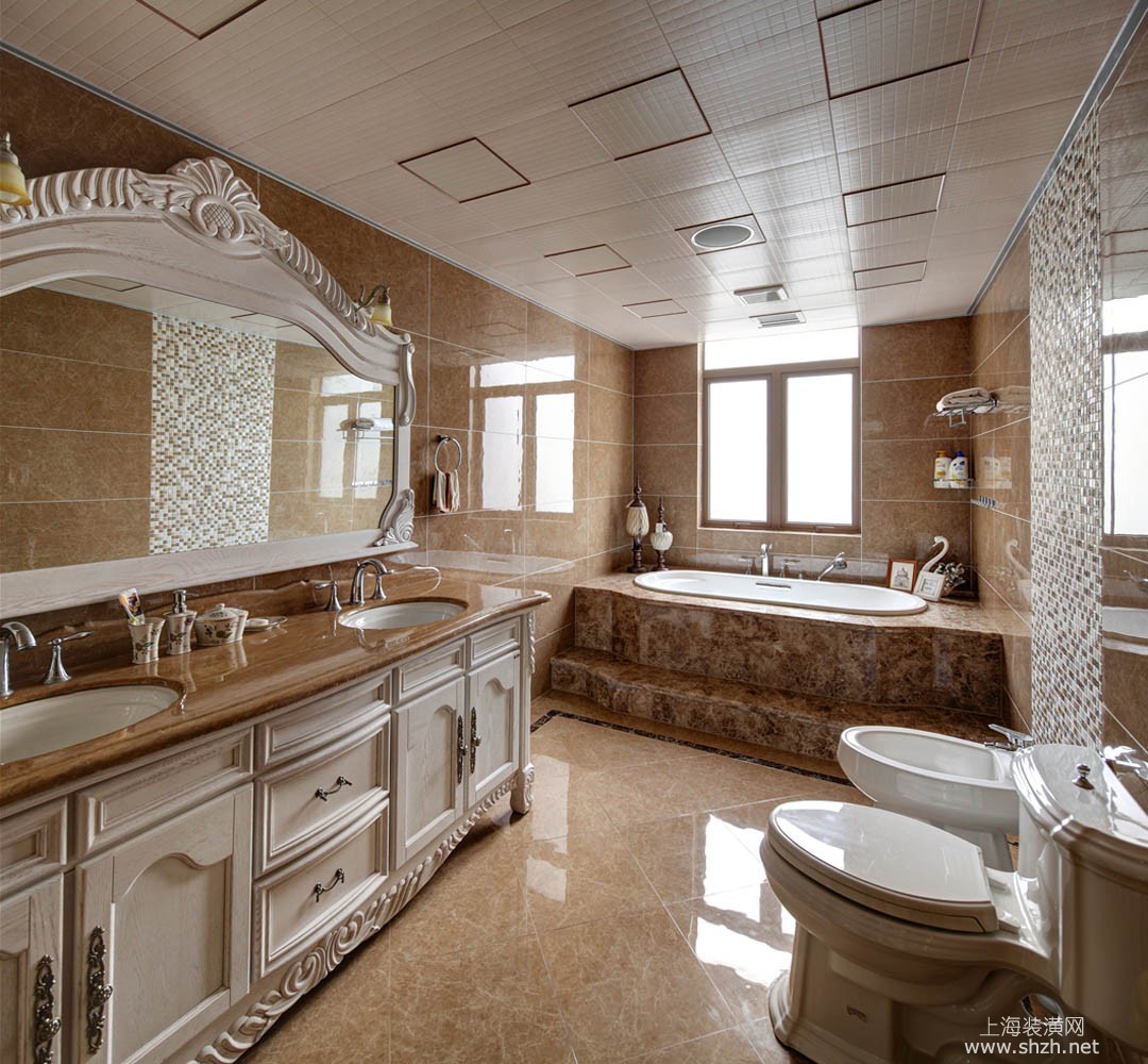 卫生间 - 别墅装修欧美古典风格设计案例展示,上海腾龙别墅设计咨询预约电话:15800615719