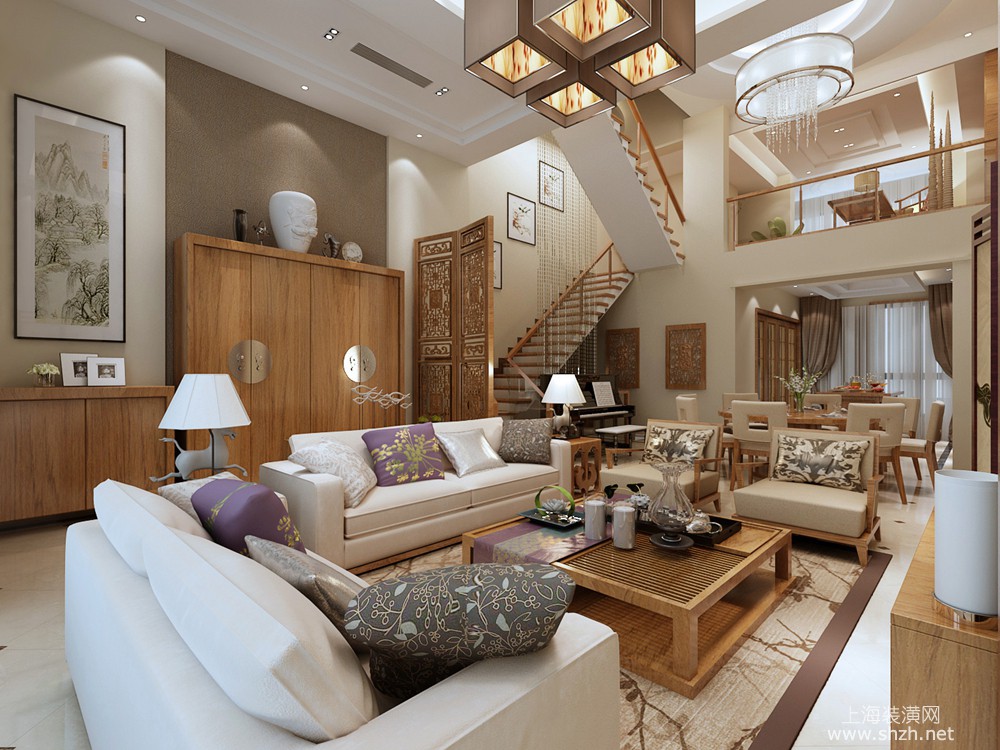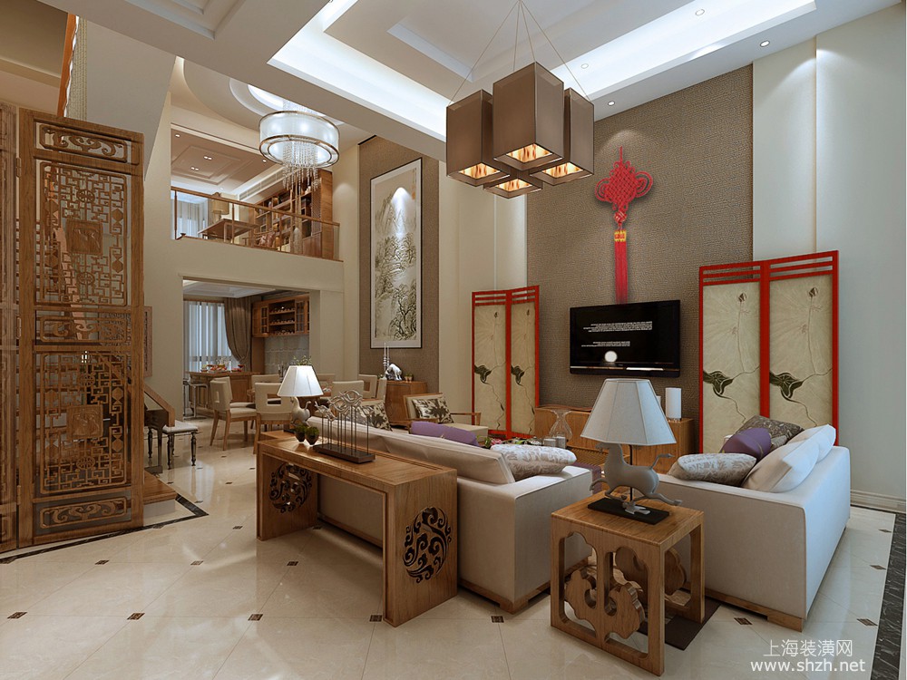 旭辉江湾墅别墅装修新中式风格设计-设计效果图