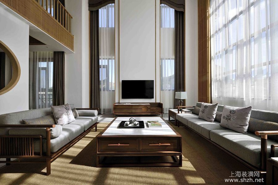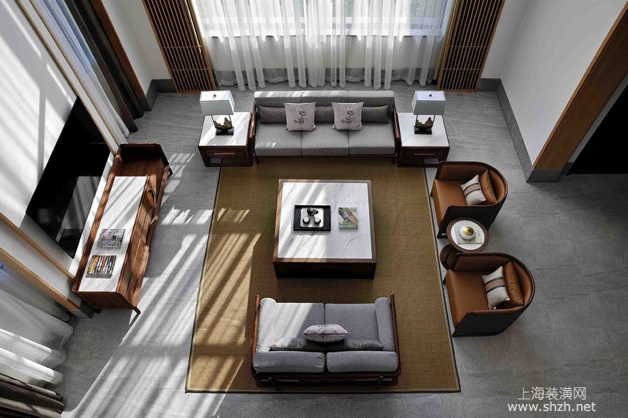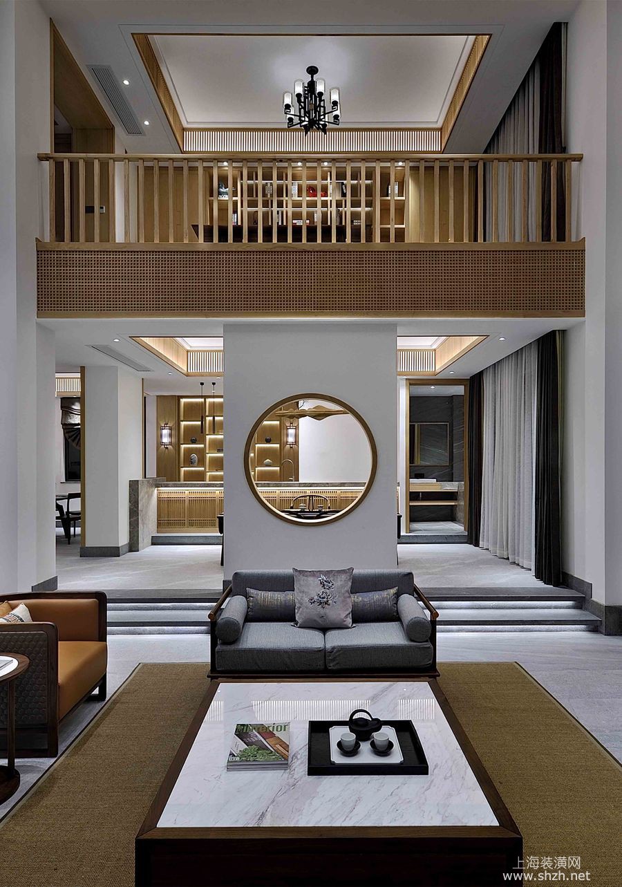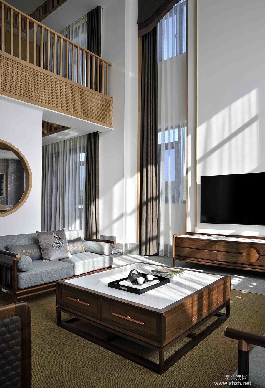 客厅 - 别墅装修新中式风格设计案例展示,上海腾龙别墅设计作品,欢迎品鉴