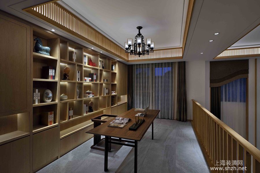 书房 - 别墅装修新中式风格设计案例展示,上海腾龙别墅设计作品,欢迎品鉴