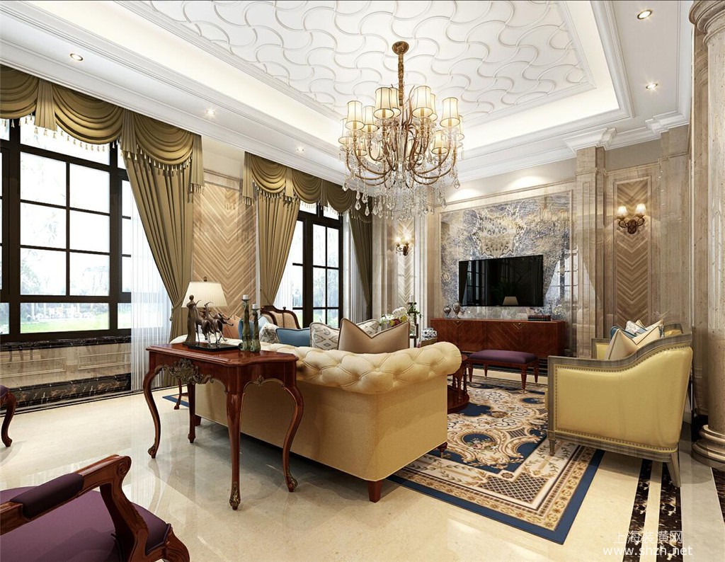 客厅 - 中建大公馆别墅项目装修设计案例,上海腾龙别墅设计作品,欢迎品鉴