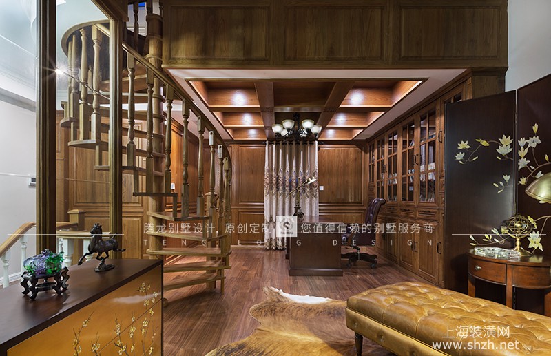 14-四层书房.jpg - 中金海棠湾别墅项目装修美式风格完工实景案例展示,上海腾龙别墅设计作品,咨询预约电话:15800615719