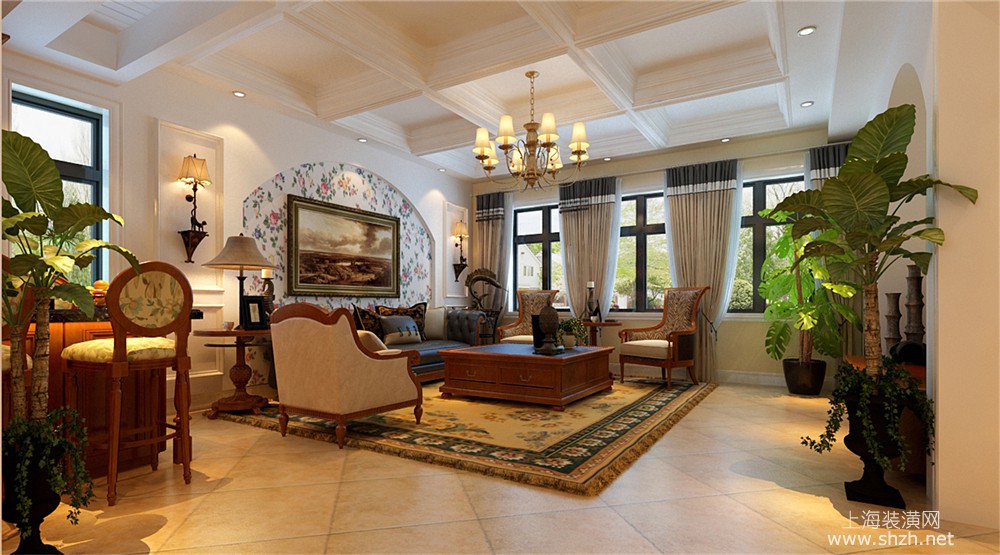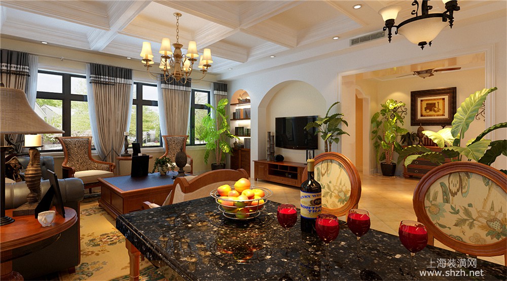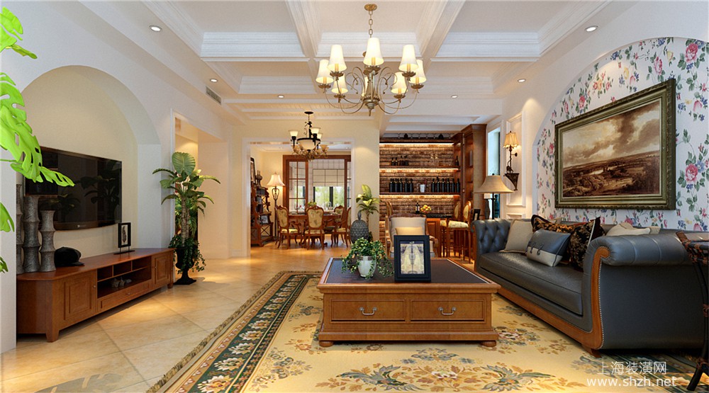 客厅 - 达安圣芭芭花园别墅项目装修美式风格设计,上海腾龙别墅设计作品