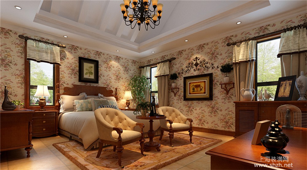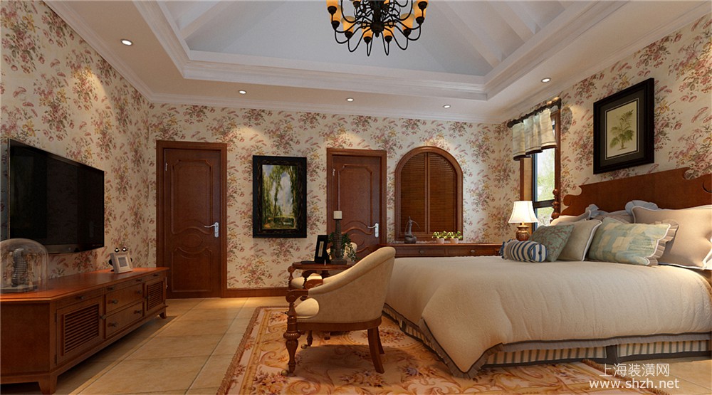 卧室 - 达安圣芭芭花园别墅项目装修美式风格设计,上海腾龙别墅设计作品