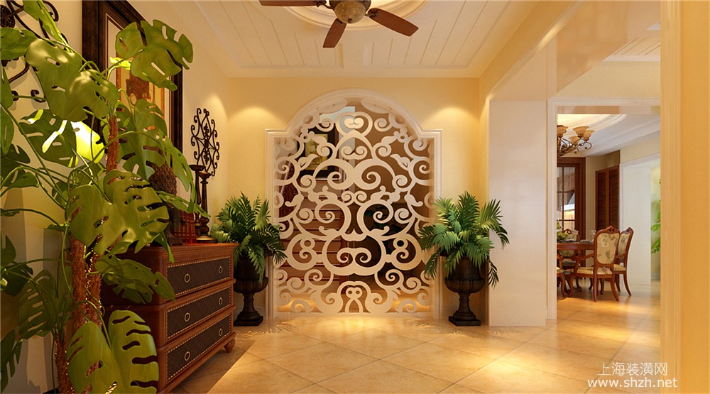 玄关 - 达安圣芭芭花园别墅项目装修美式风格设计,上海腾龙别墅设计作品