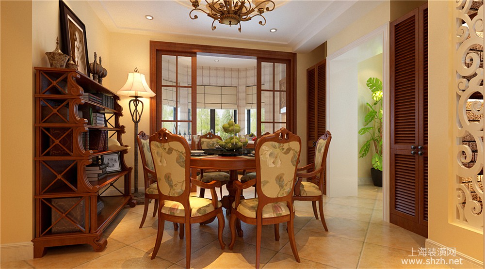 餐厅 - 达安圣芭芭花园别墅项目装修美式风格设计,上海腾龙别墅设计作品
