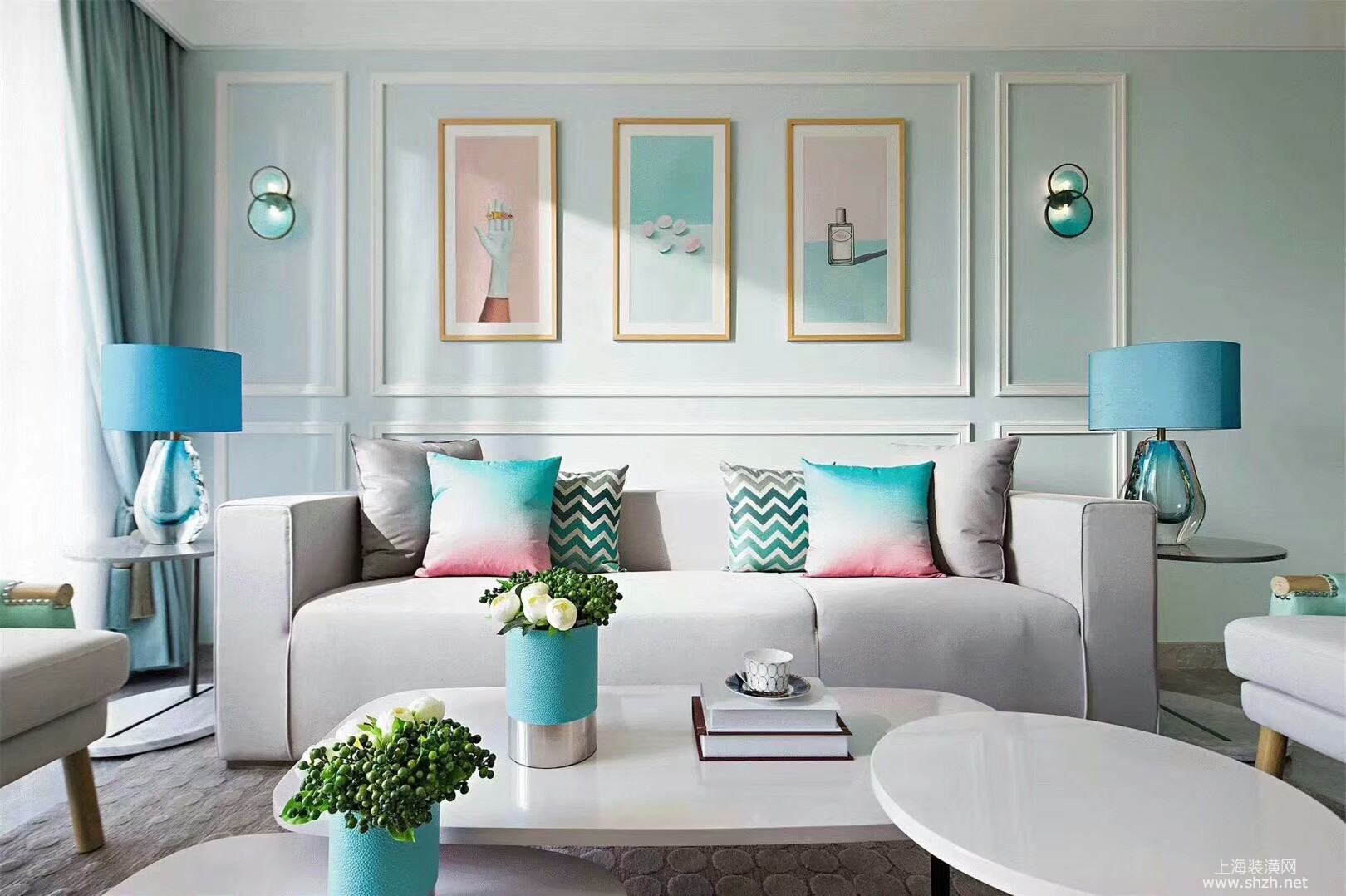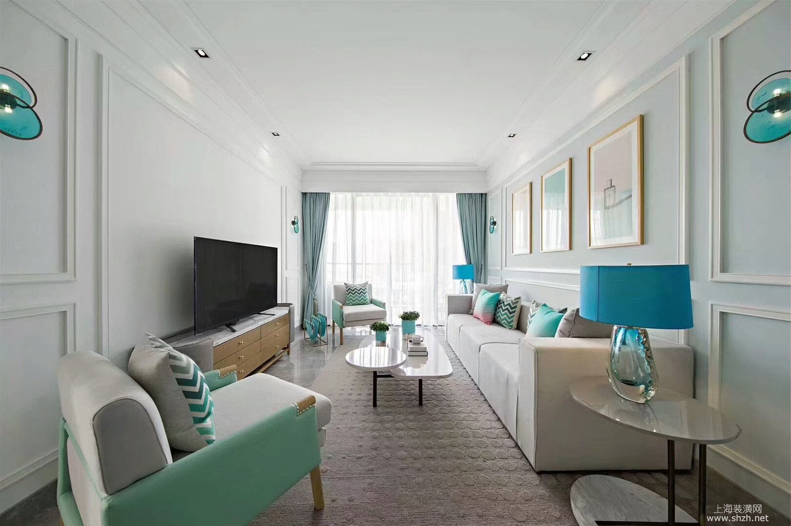 客厅 - 汤臣豪园大平层欧美风格设计案例,上海腾龙别墅设计作品