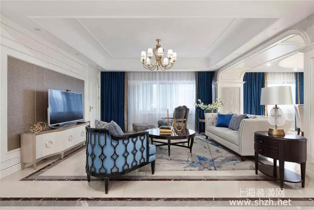 客厅 - 仁恒滨江大平层装修完工实景展示,上海腾龙别墅设计咨询预约电话:15800615719