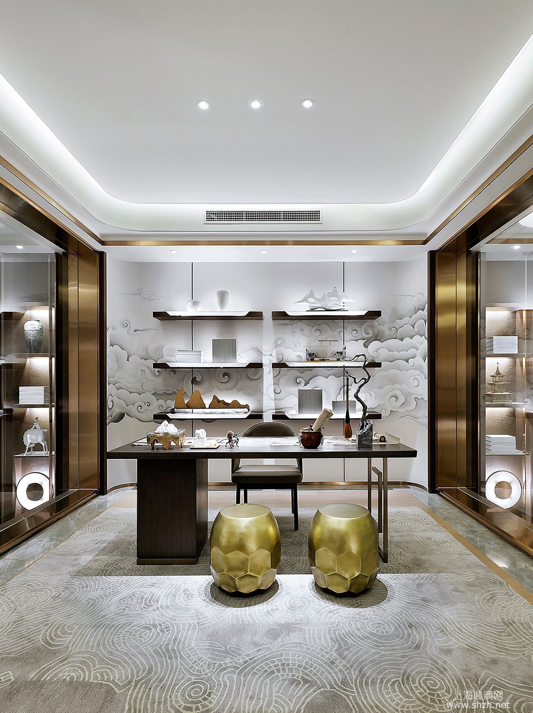 书房 - 别墅装修中式风格完工实景案例展示,上海腾龙别墅设计
