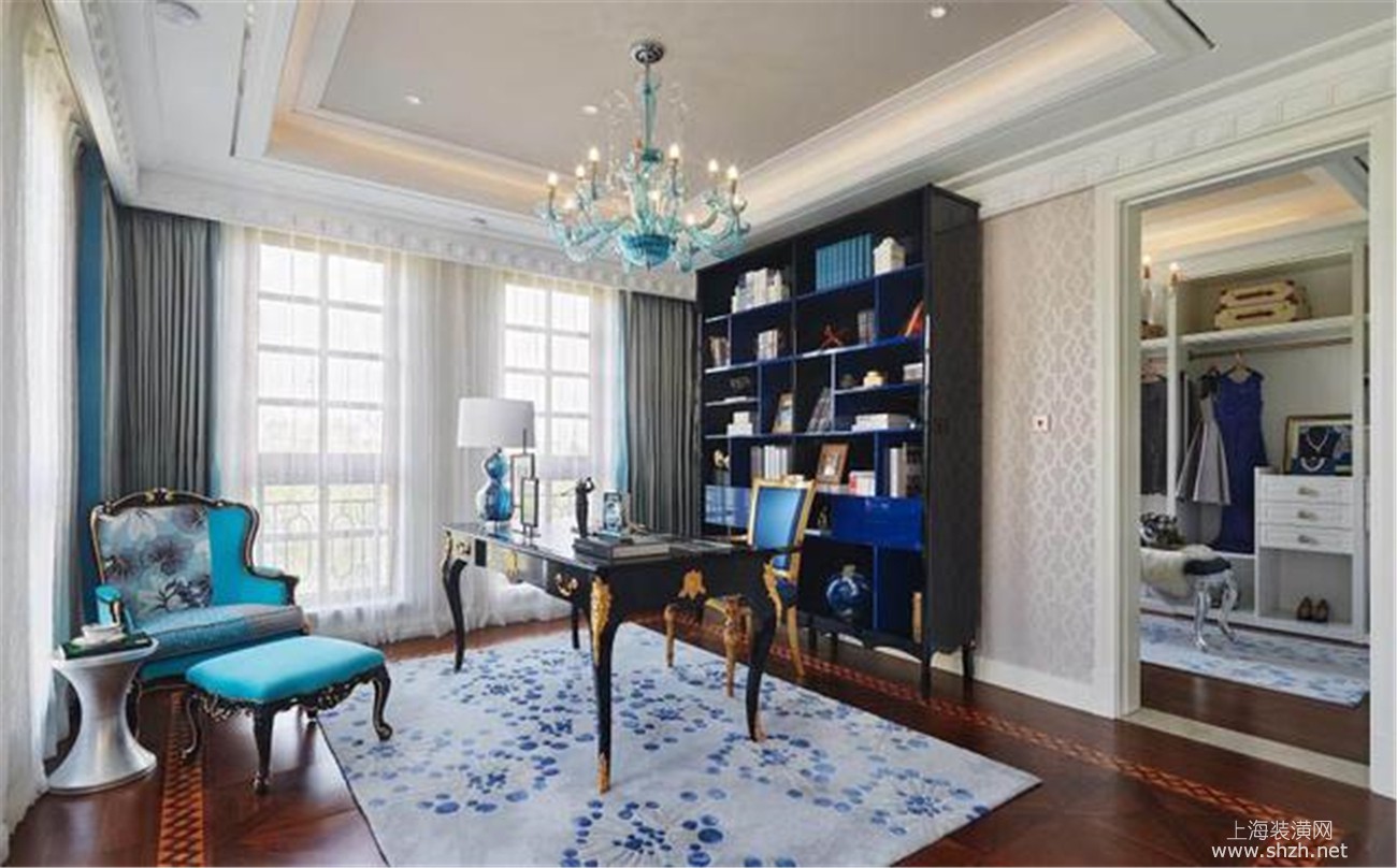 书房 - 别墅装修欧式风格完工实景案例展示,上海腾龙别墅设计作品