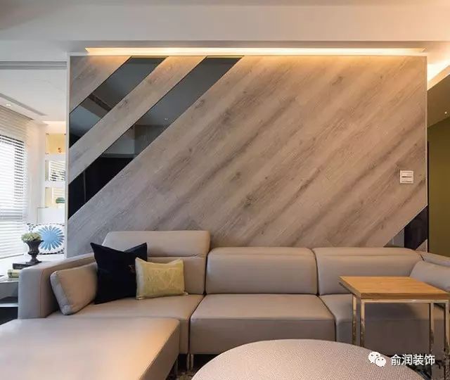 不规则的背景墙成了玄关和客厅之间完美的隔档,使整个空间创意感十足。黑色的玻璃反光镜,既弥补了背景墙的空洞,又使客厅变得更加具有立体感。