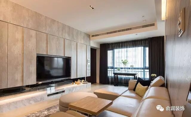 富有质感的大理石电视背景墙,和沙发背景相得益彰,精致的木质桌几,和整个装修风格一致。