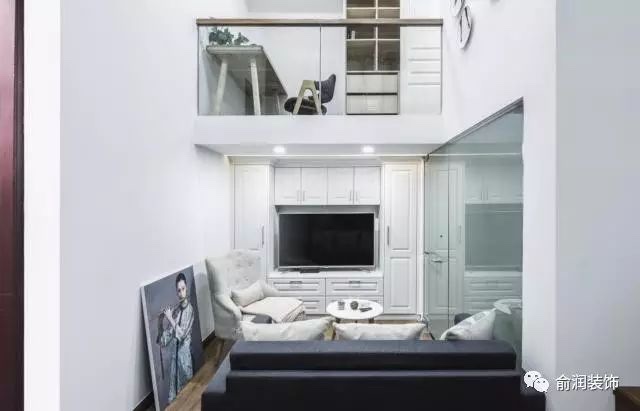 当楼梯的护墙板装饰放下的时候,整个二楼的空间是一个整体,实现了业主的卧室,衣帽间,书房的三大功能。
