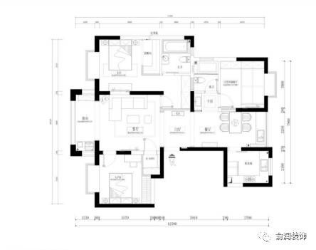 原始户型图 整体户型南北通透,可改造性比较大,但是最初的格局没有合理利用,家里的储物空间也不够多,最重要的是进门对着主卧门,且不说门对门的弊端,入户也不大气,没有门厅,餐厅边的北阳台比较小,可扩进餐厅区域,家里有5口居住,其中一个卫生间是要考虑干湿分离,北房间面积较小,榻榻米对于空间使用和储物来说更加实用。