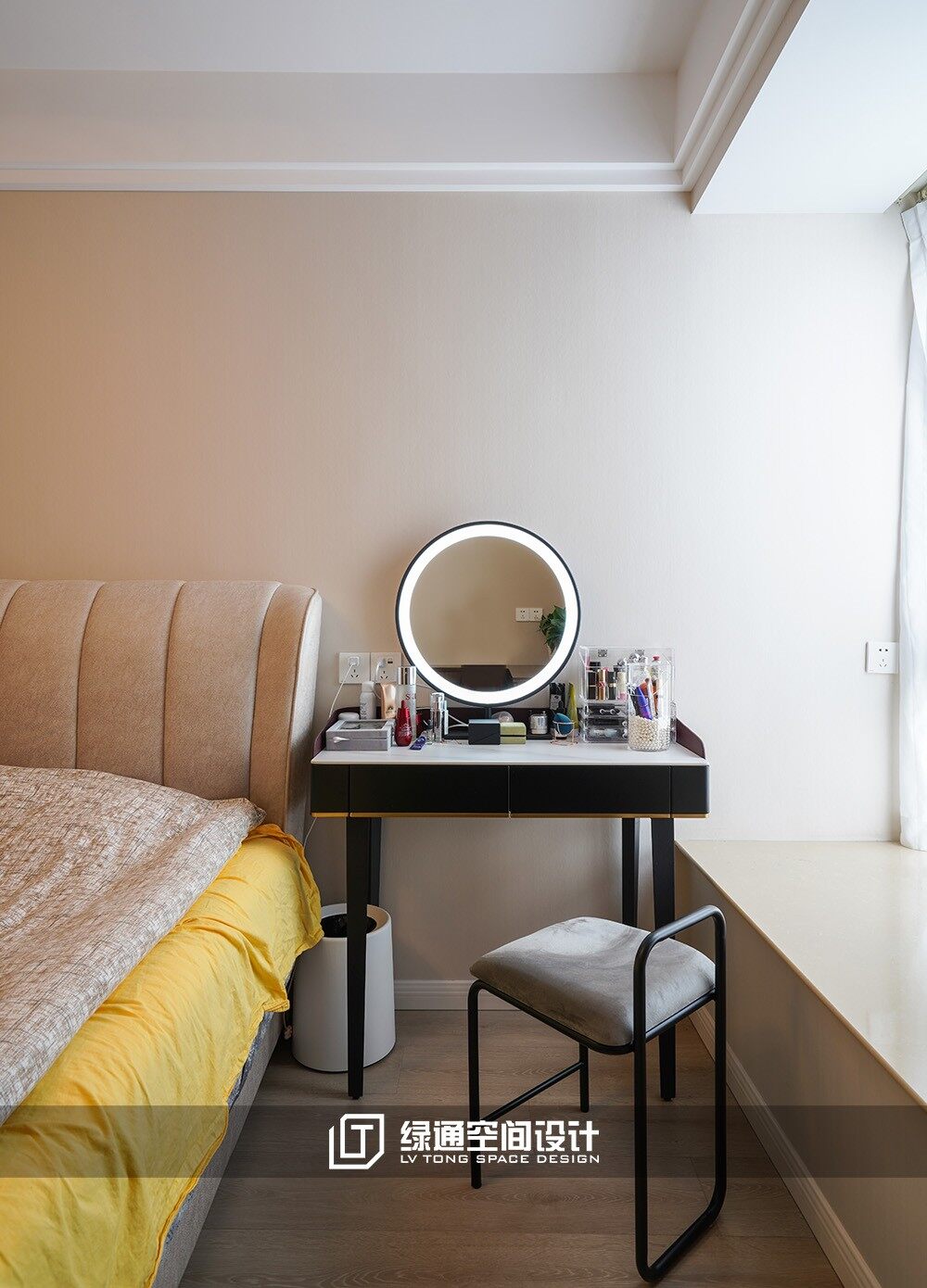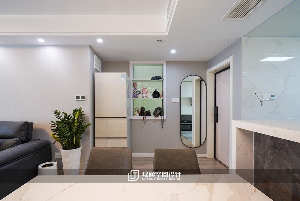 入户玄关:进门设计穿衣镜,一是为了更好的出门化妆方便,二是延伸空间的质感。壁柜设计可随手放置包包,钥匙等物品,为进门换鞋提供便利。