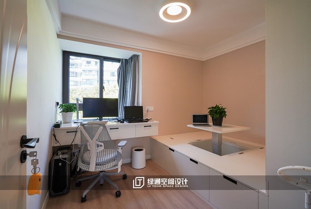 次卧:榻榻米式设计,既增加储物功能,又节省房间空间,小衣柜的设计不会因为生硬而显笨重。悬挂飘窗式写字台设计,一是为了办公更方便,同时也节省房间空间。学习应该是轻松的,而不是压抑的,所以悬挂飘窗式写字台设计符合这一理念。