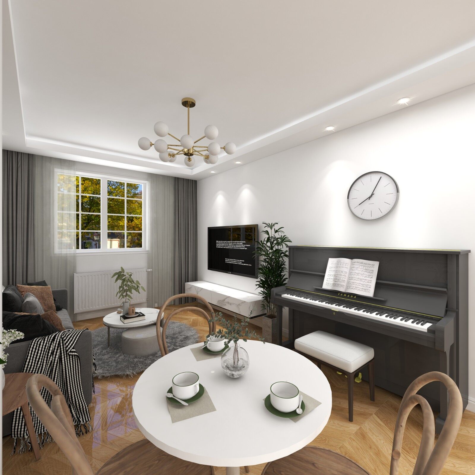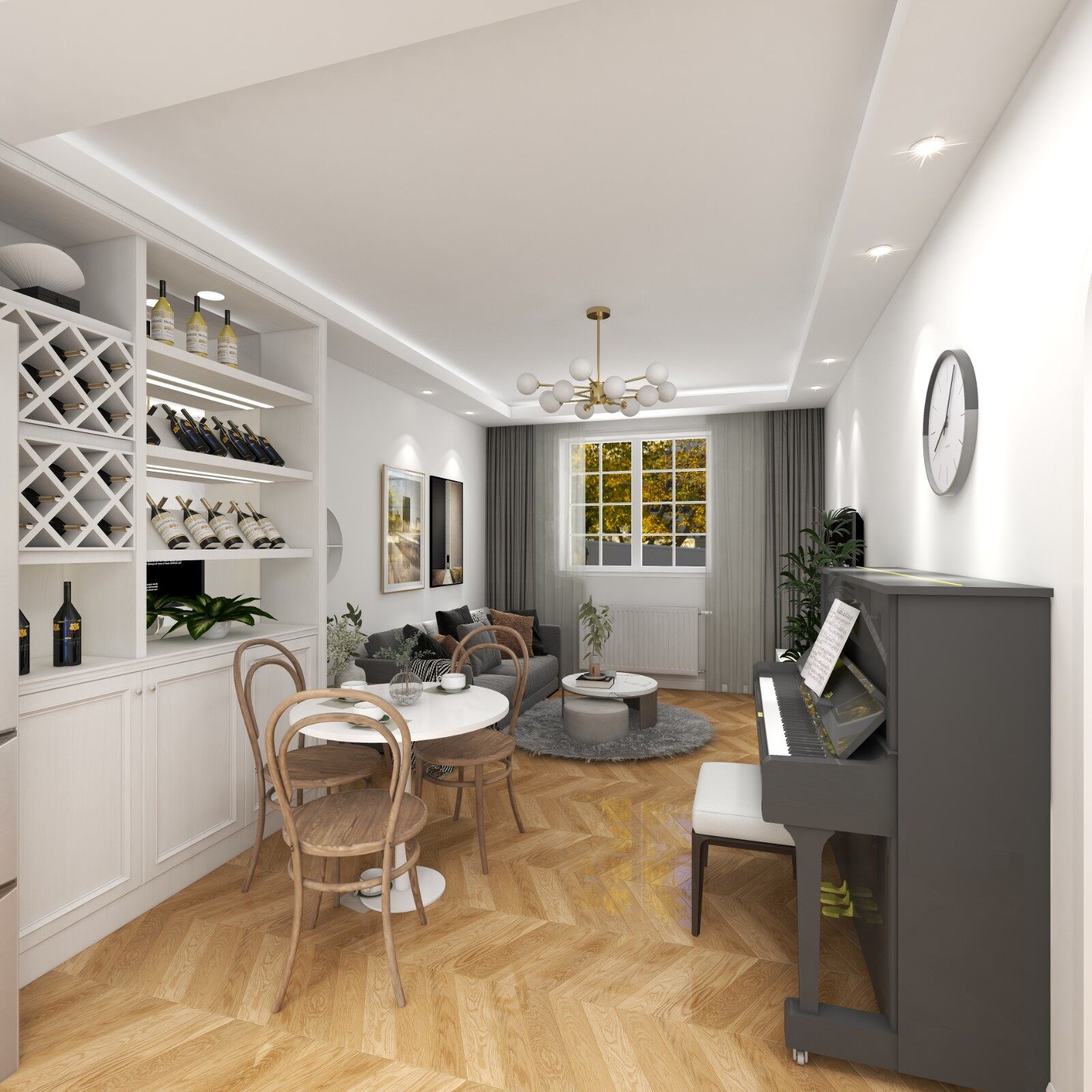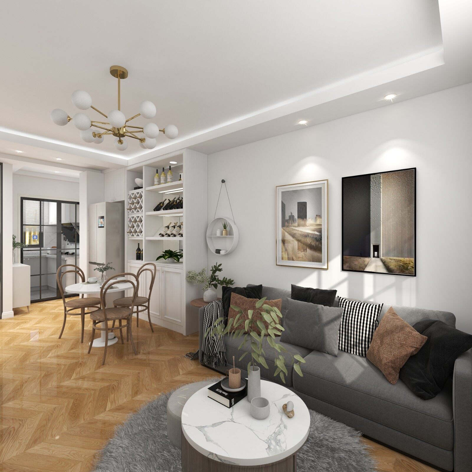 两室两厅的格局,注重采光/环保/收纳,采用现代简约的装修风格。