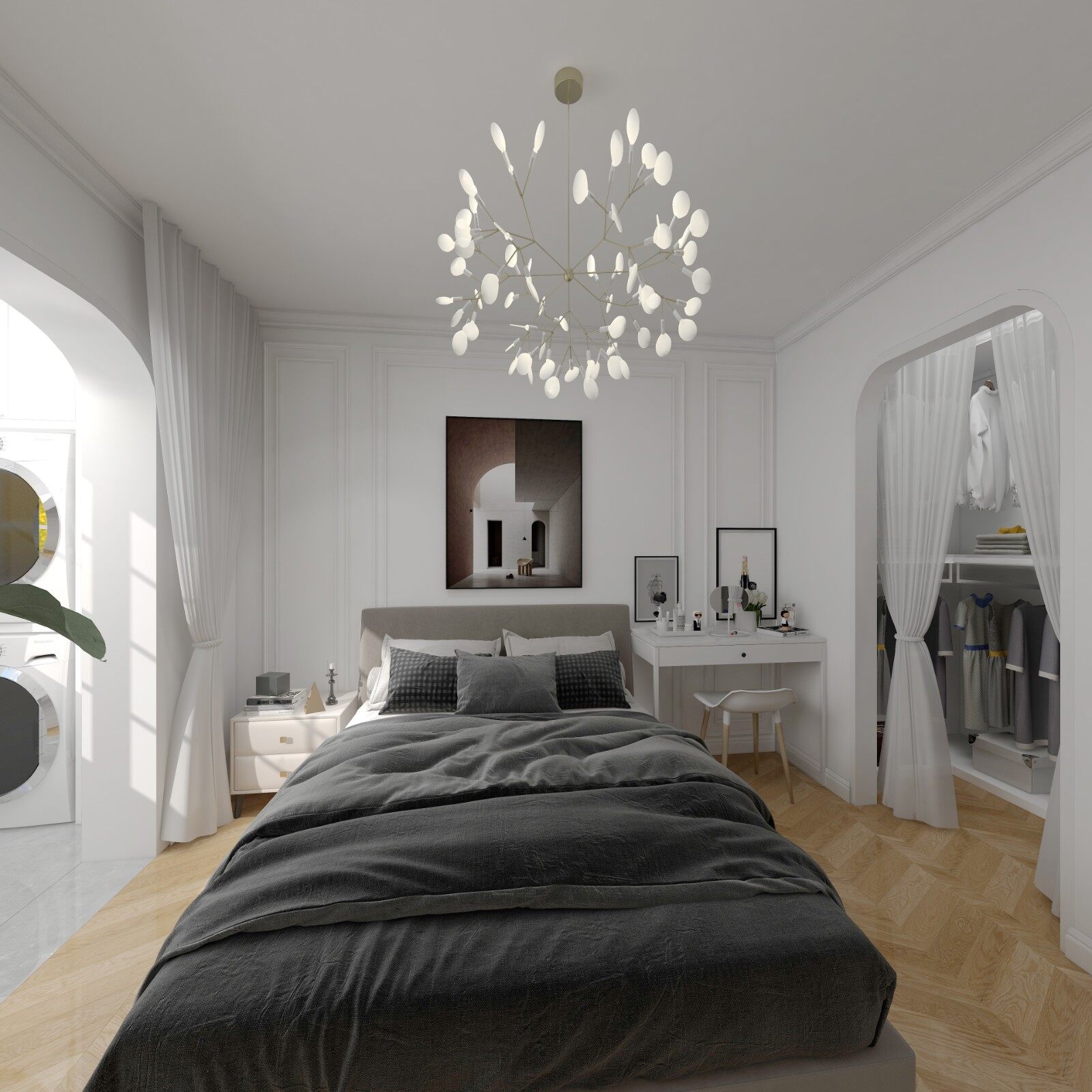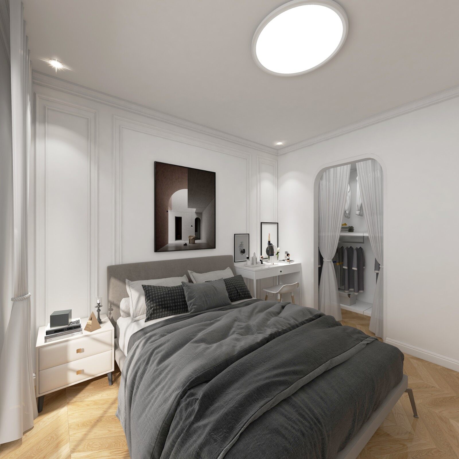 主卧布局简单,一张床、一个内嵌衣柜,面积小也有大容量。