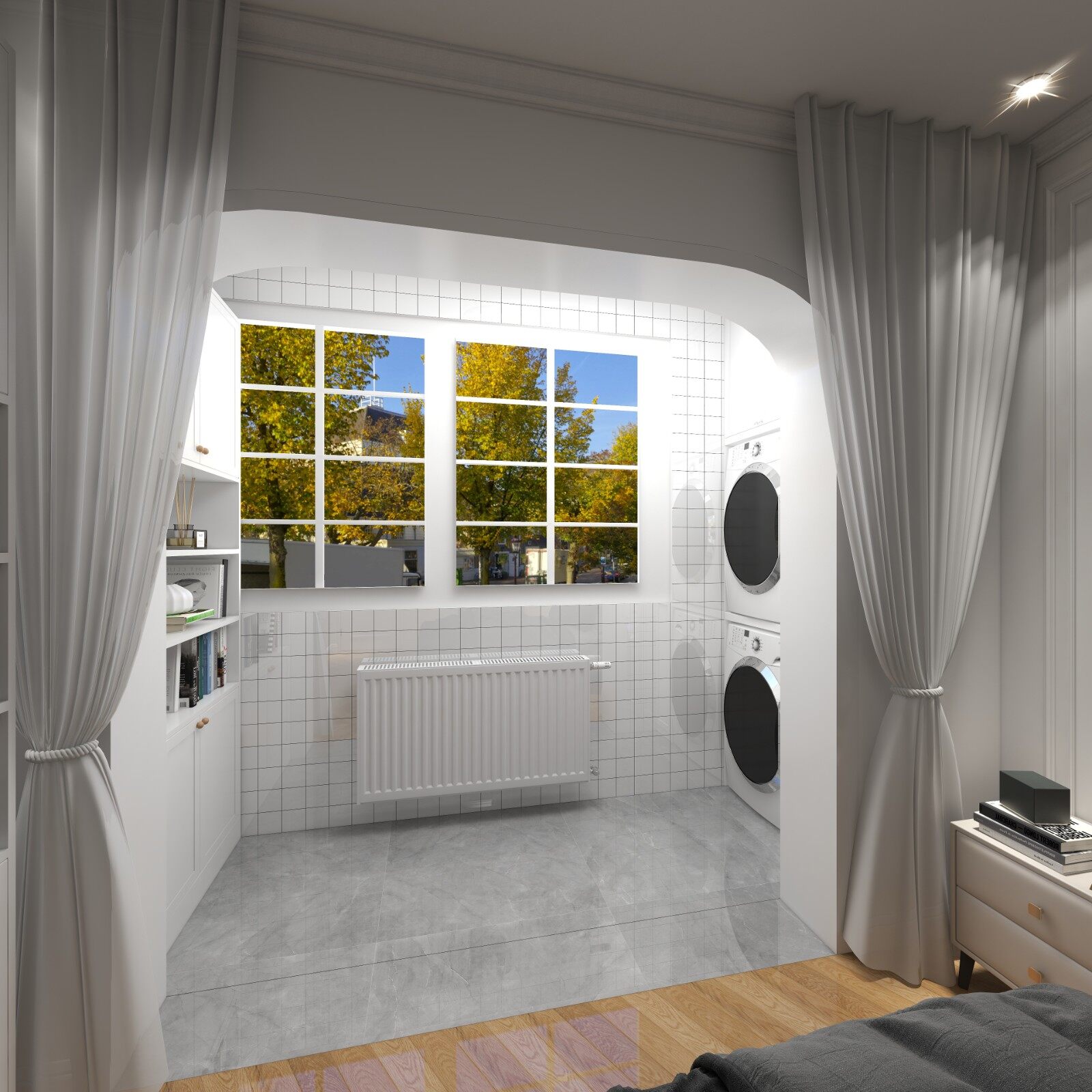 阳台做了工作阳台,保留洗衣和储物功能,与卧室连通,保证采光充足。