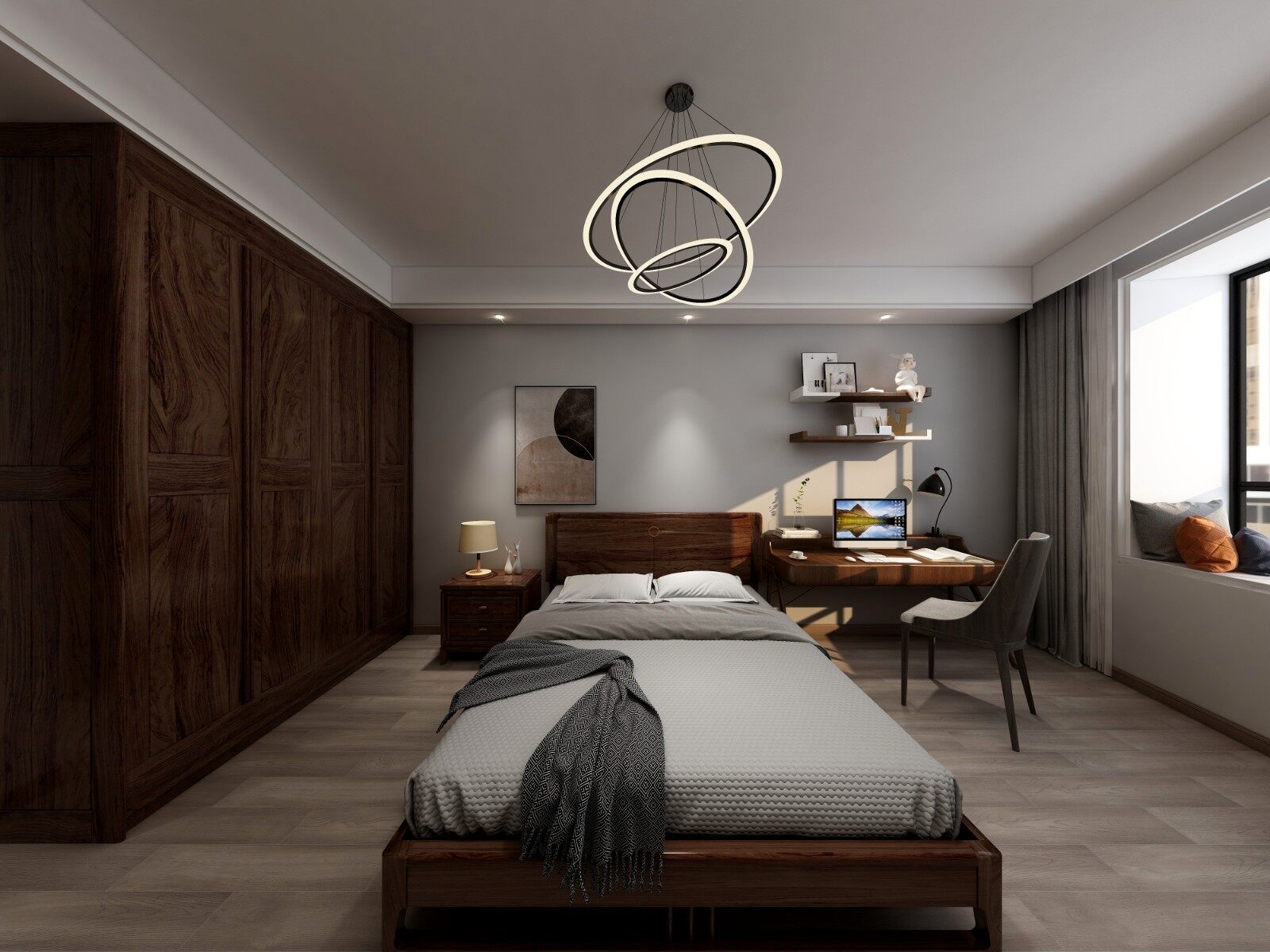 次卧保留原始家具,结合简单的黑白灰色调。