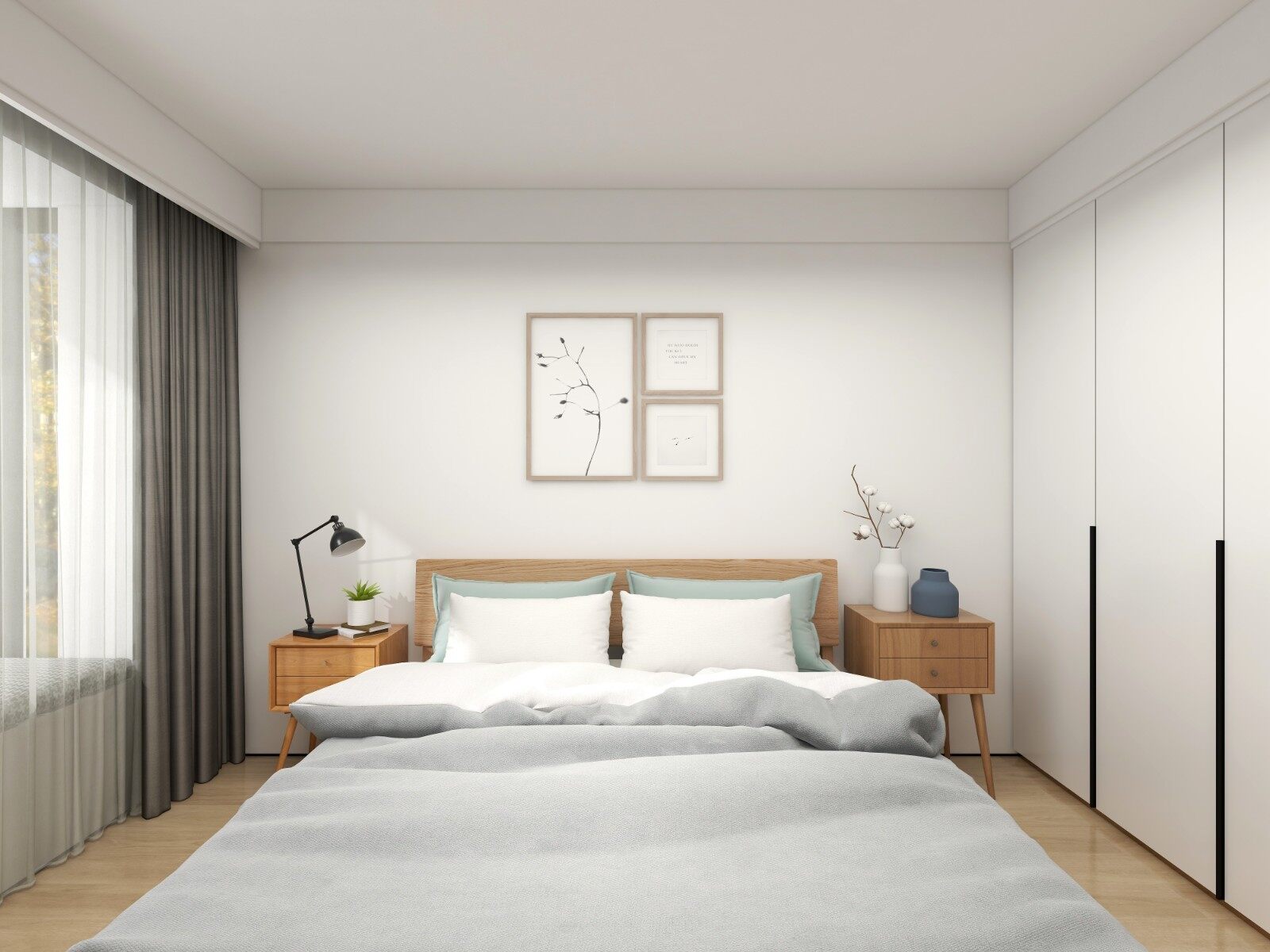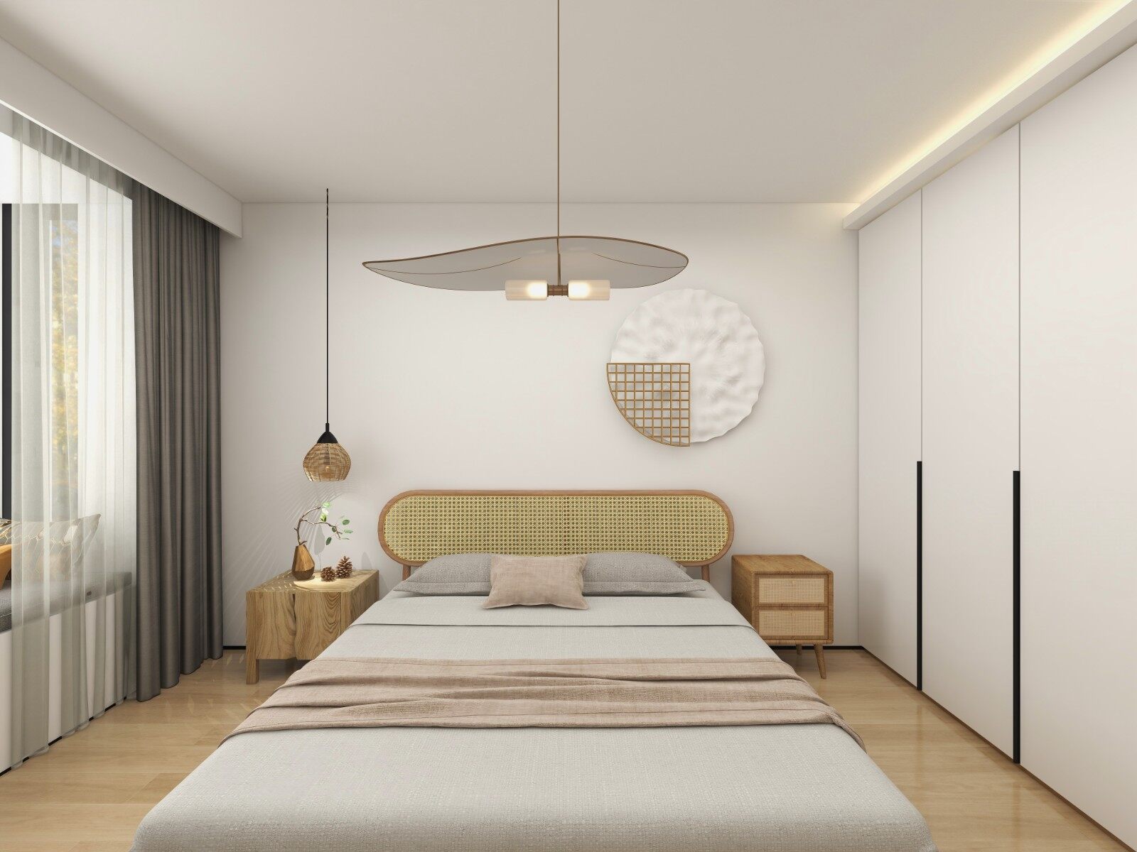 父母房采用简单的白+木色系,打造简约日式空间。