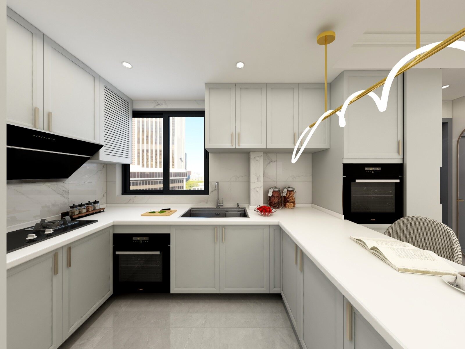 餐桌与岛台结合设计,实用大气。