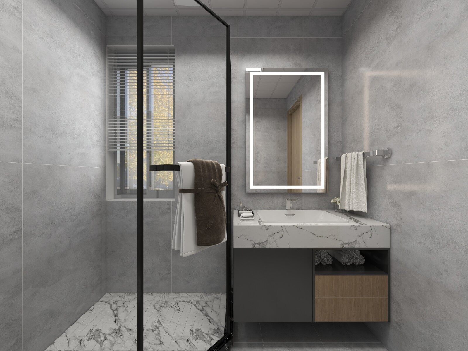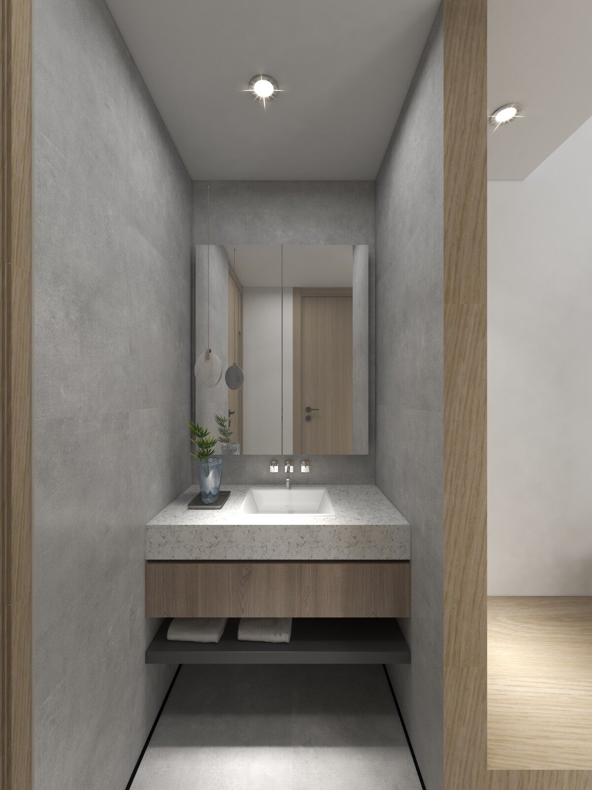 灰+木的颜色搭配,营造不一样的洗浴空间