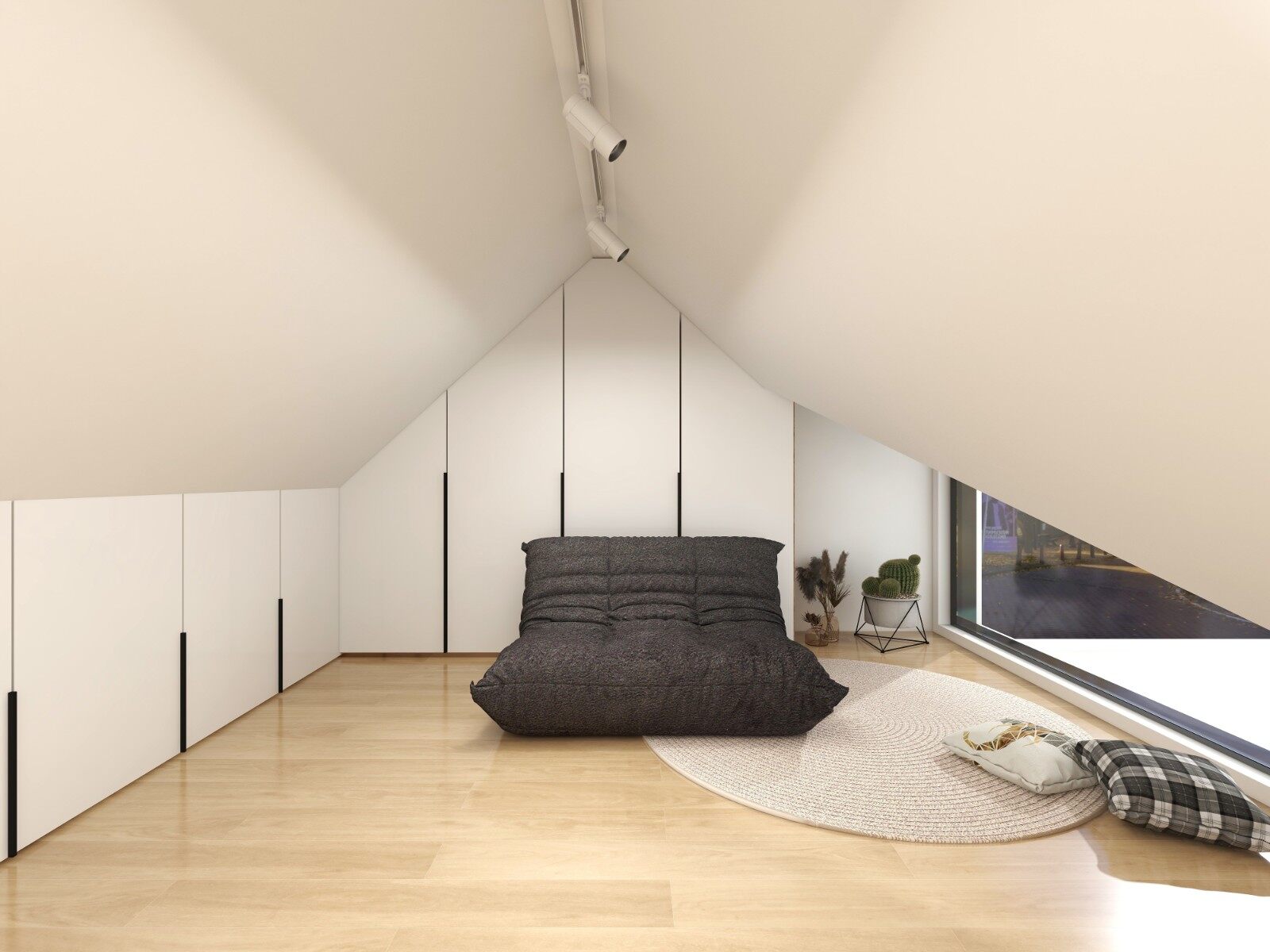 阁楼采用挑空设计,局部增加储物空间。