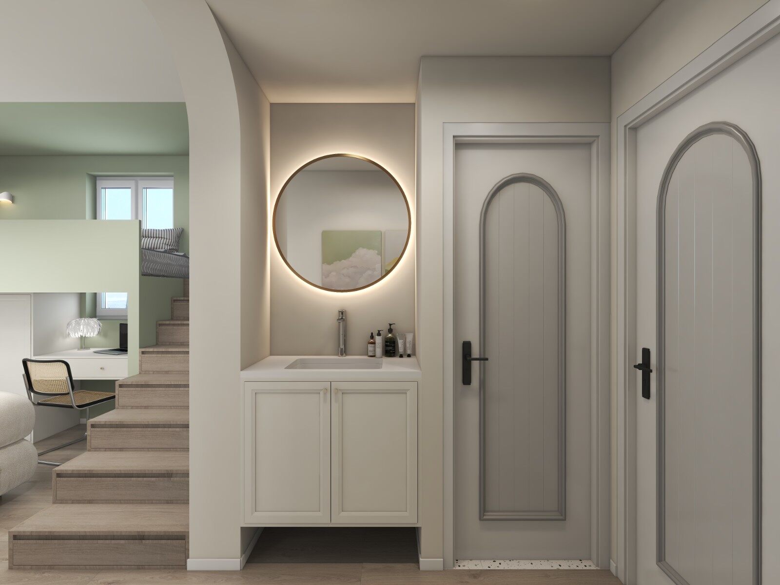 增设高低空间差距,加大空间破局感。添加新的“美”式生活,强化亲子空间,为铺设美好生活,陪伴成长,教子育子增加可操作空间。