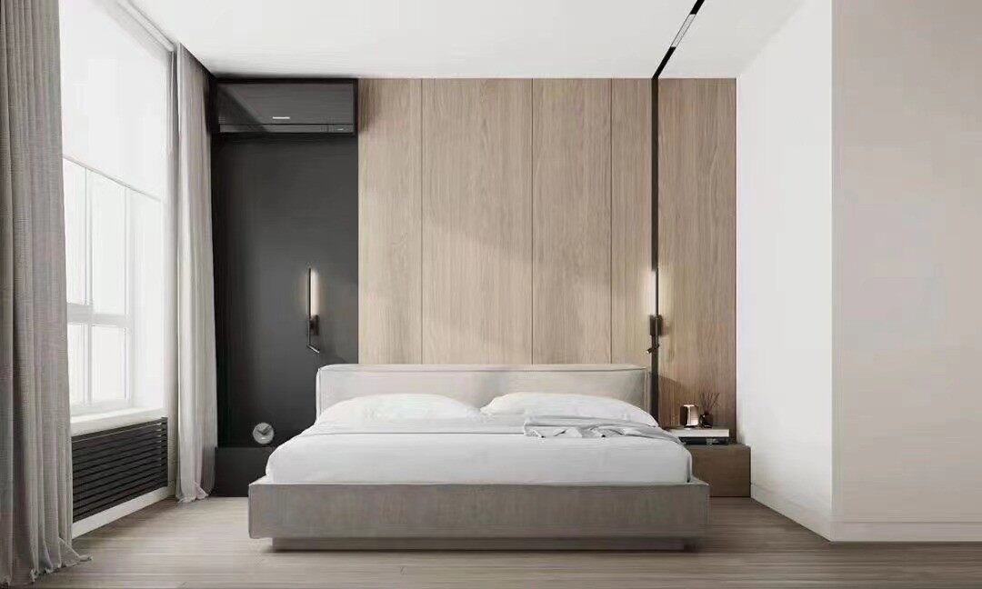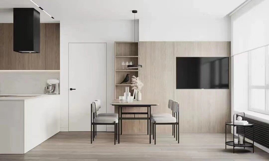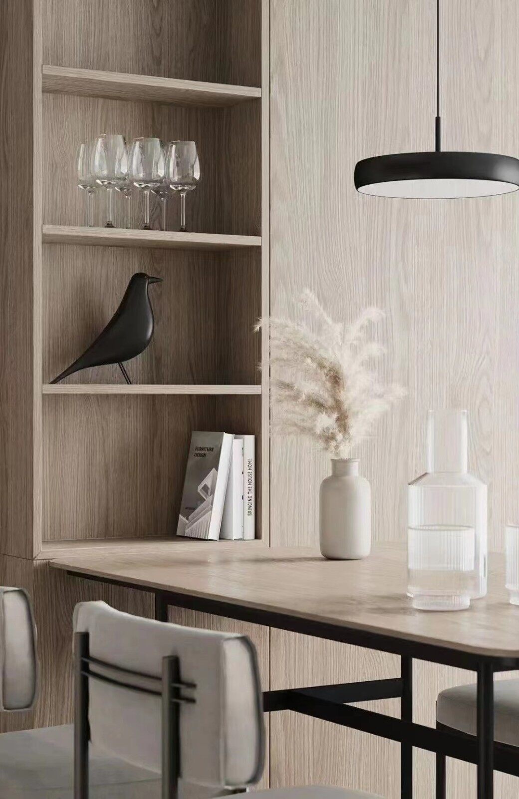 大面积纯色,简约风格,搭配木制全屋定制,线条简约,所有空间感觉更舒适