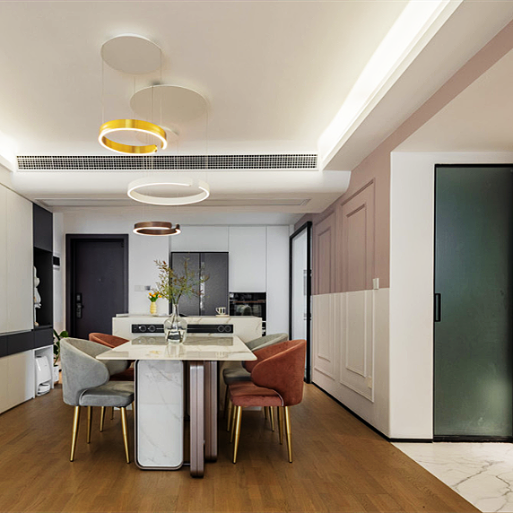 原厨房改为玄关和西厨 西厨连接餐桌,更便于聚餐和与家人交流,使其整个空间更灵活。