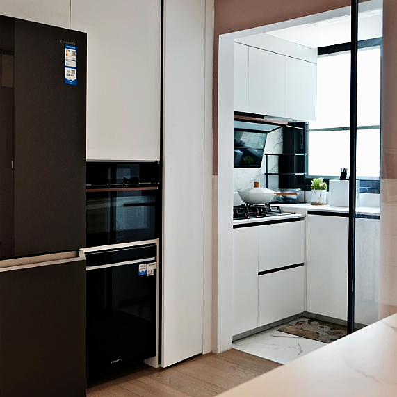 开放原本的厨房 将生活阳台改为五脏俱全的小中厨。