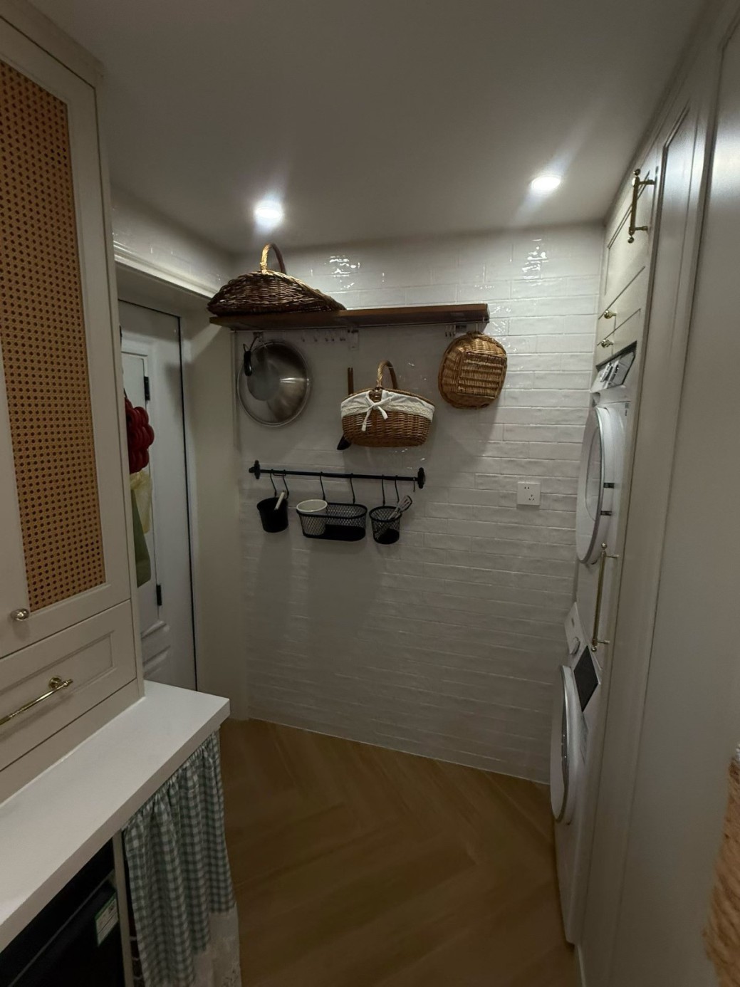 冰箱嵌入到了橱柜和墙面之间空隙的位置,且不同操作区台面设计,更合理地满足实际实用的需求,设计为生活服务。