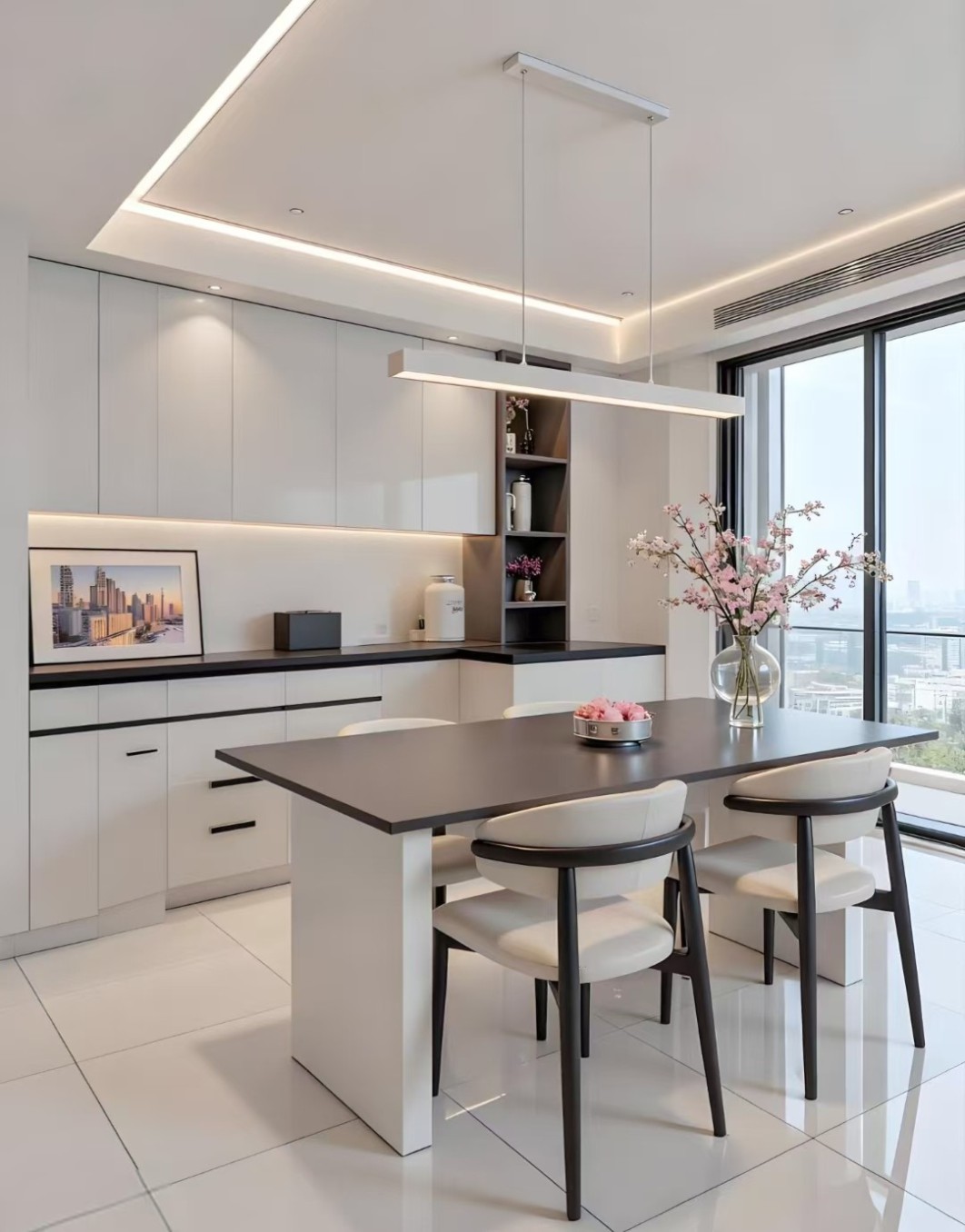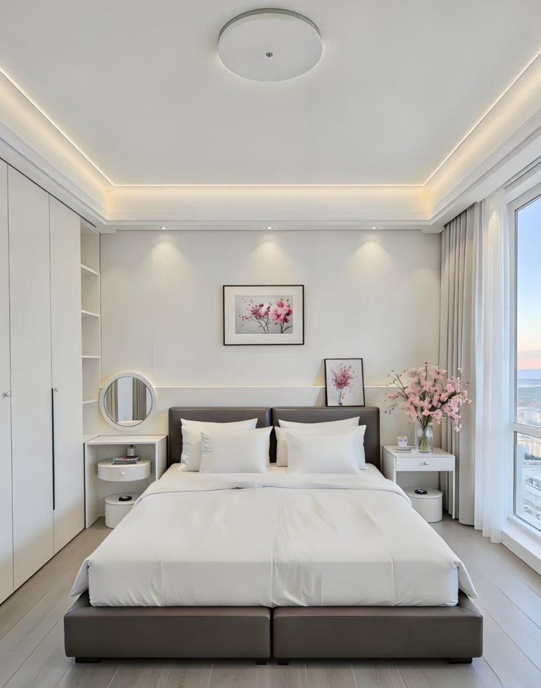 本案采用经典现代设计,以简洁利落的线条与中性色调构建空间基底,注重功能布局与通透感。搭配简约软装与质感材质,融入无主灯照明与利落收纳设计,整体时尚大气、实用舒适,打造兼具颜值与生活感的现代宜居空间。