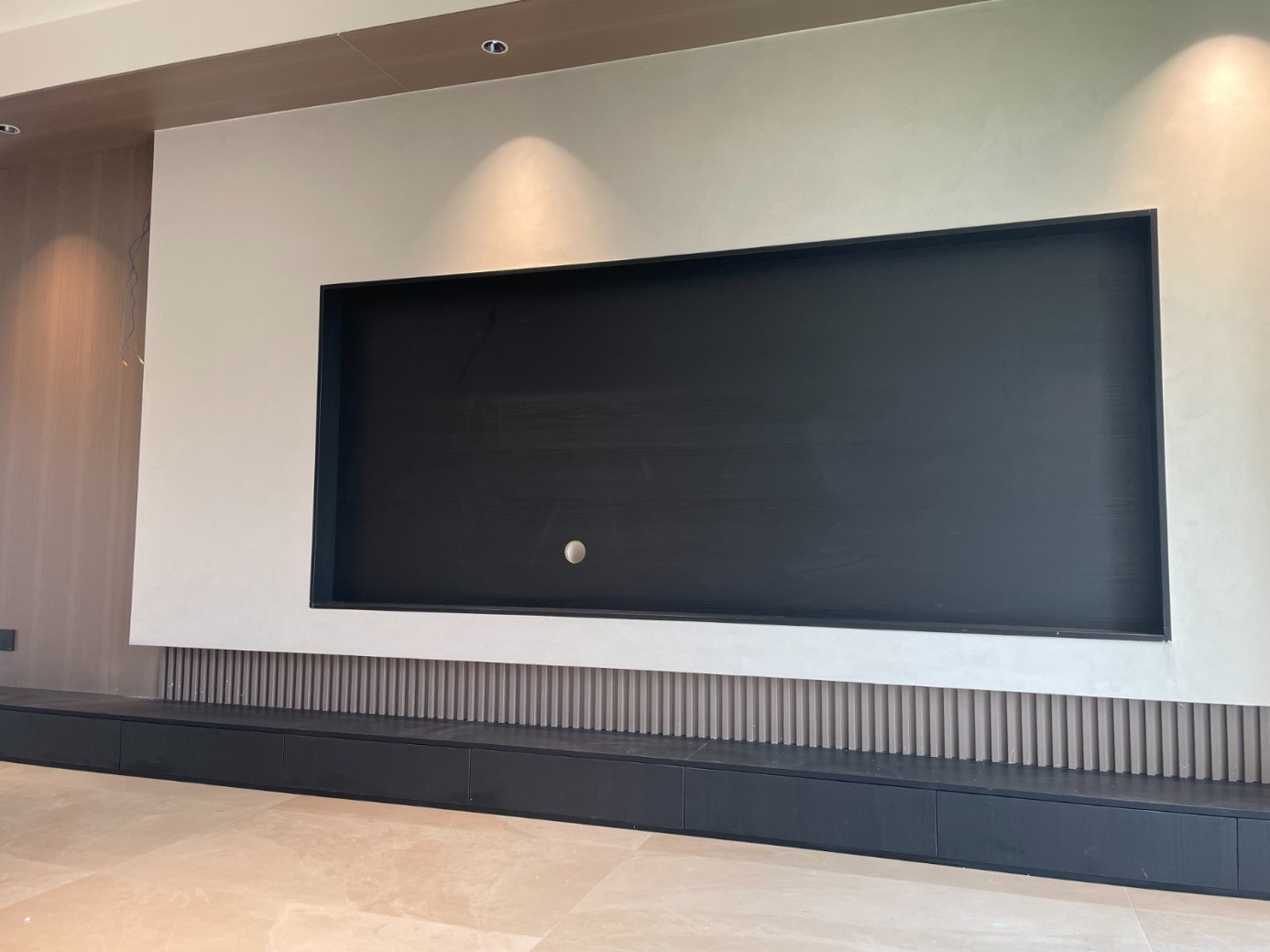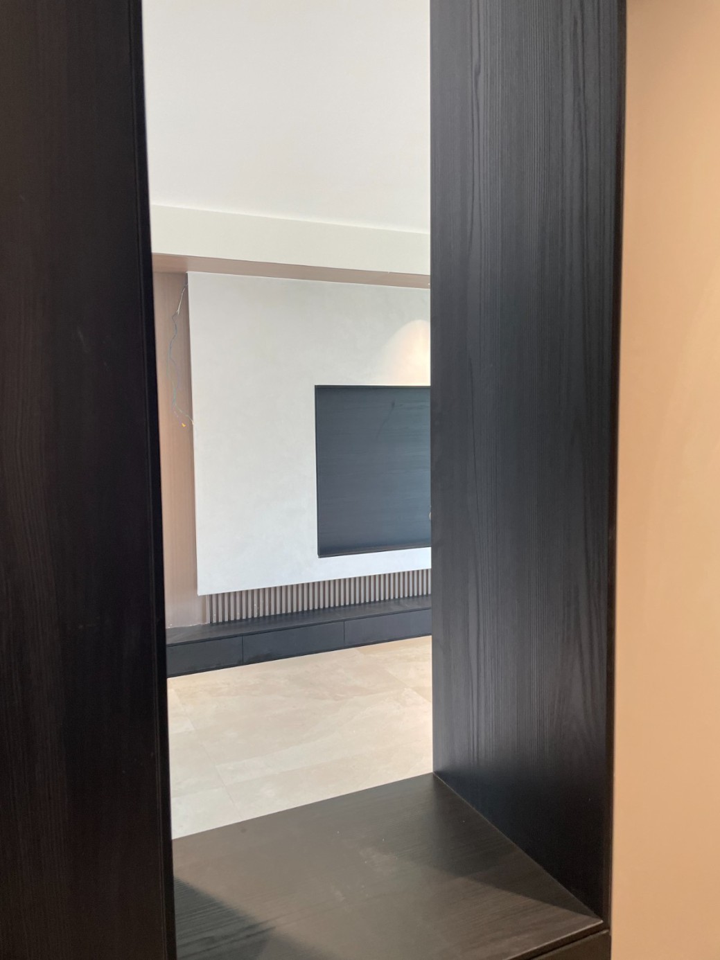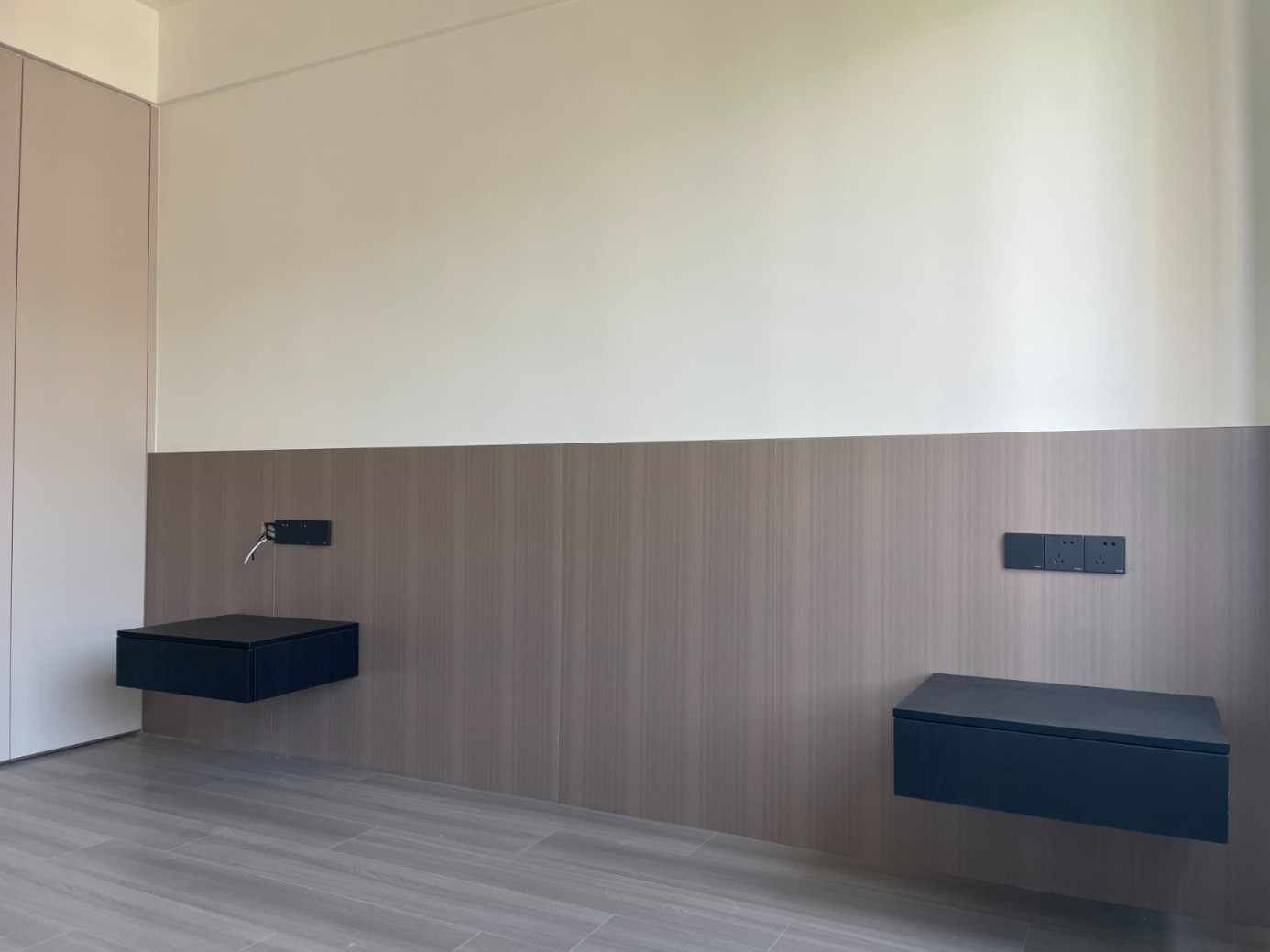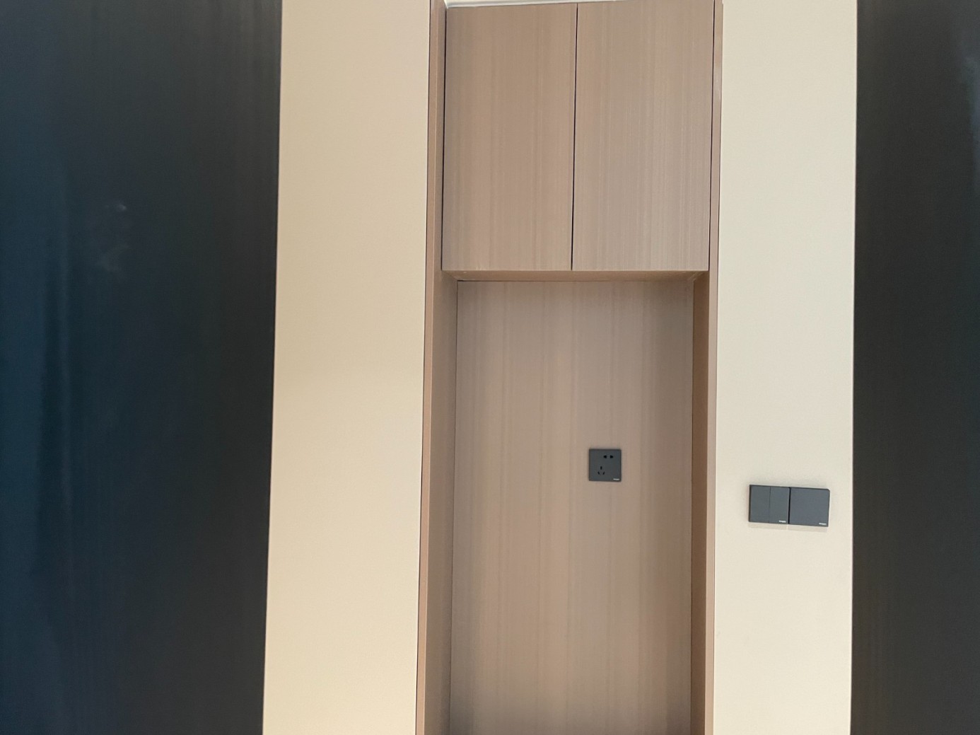 现代极简风的全屋定制设计,整体以低饱和度的深灰与浅灰为主色调,通过简洁利落的直线条、无多余装饰的柜体造型,营造出冷静克制的空间氛围。墙面竖纹肌理与同色系定制隔断柜形成呼应,弱化了柜体的厚重感,同时利用嵌入式灯光提升空间层次与精致度,既满足了空间分隔与收纳功能,又最大化保留了通透感,完美契合现代家居对简约、实用与高级质感的追求。