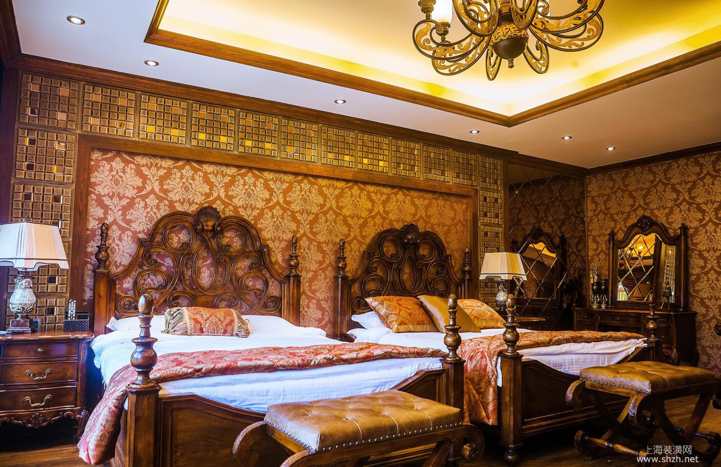 卧室 - 大豪山林别墅项目装修新古典美式风格设计,上海腾龙别墅设计作品,欢迎品鉴