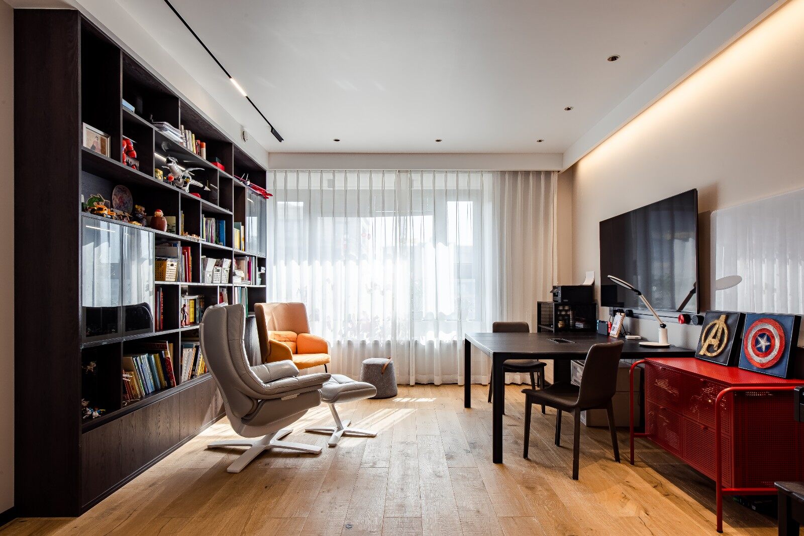 本案业主是我们都很熟悉的的老朋友,在业主和装修公司“互相不痛快”的装修界,我们却和业主成了老朋友、好朋友。在拿房之前,就来探讨了设计,一周一次3-4小时的讨论,数月以后最终还是选择了我们,被欣赏并被选择,总是让人感到欣喜。对于家,业主有着自己独特的想法与要求,当然,对设计的接受度也很高,与设计师的沟通中,全程高契合度;施工过程中也相当配合,为了追求效果,家具、灯具、摆件都选择了设计师推荐的款式,遇到一个懂你的设计师,或遇到一个懂你的业主,都是一件让人十分兴奋的事;完成一套好的设计,单方面的热情是不够的,一拍即合才是最令人开心的事。