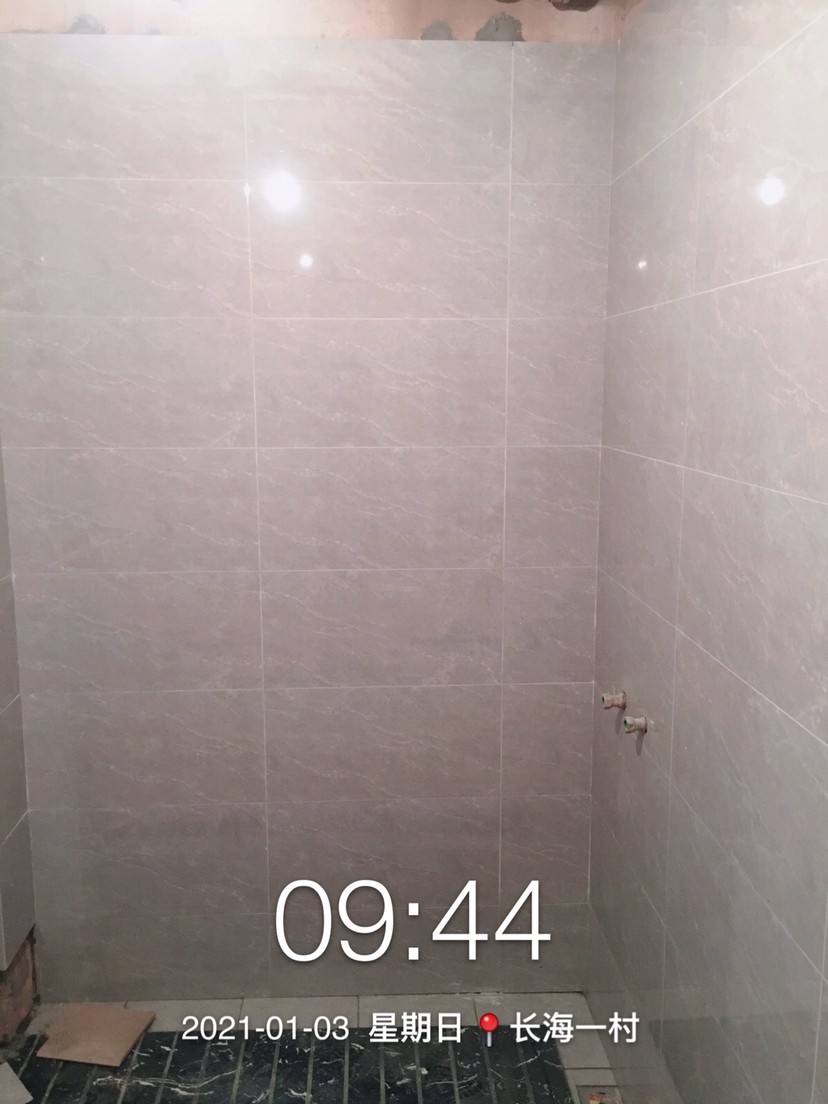 贴砖可是件手艺活。平整度,花色的拼接都显示出了师傅的手艺。