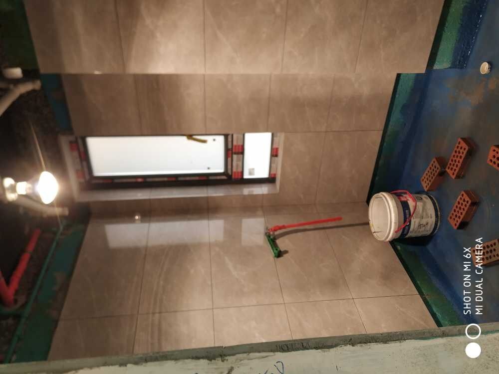 中期施工阶段,闭水实验墙面瓷砖等