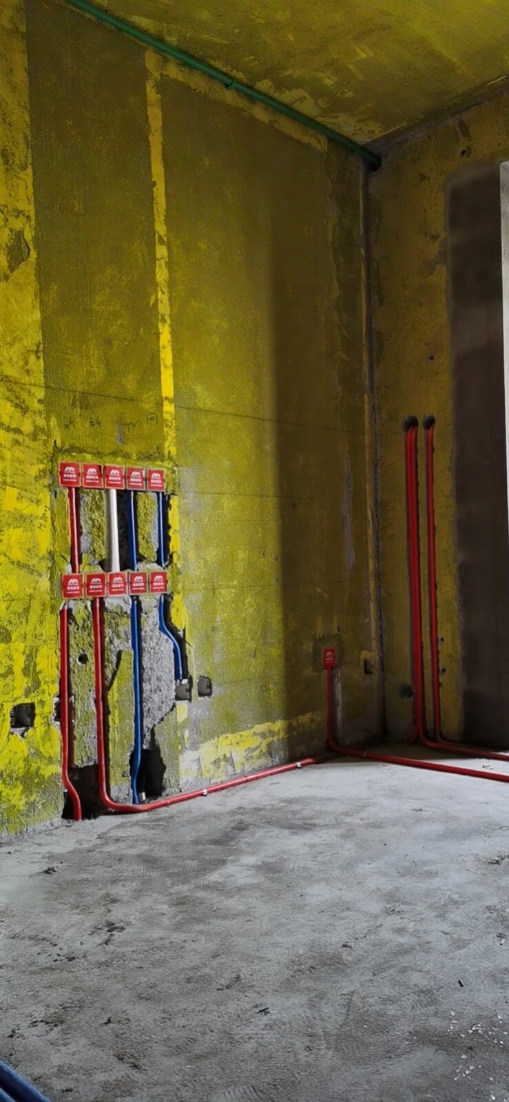 现场师傅按照施工标准进行施工,做到管线之间的距离,插座盒之间的水平横平竖直