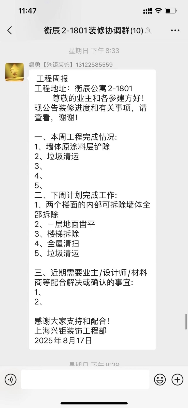首先感谢上海装潢网的推荐让我们有幸认识了业主李老师,7月份接到了量房信息,和业主李老师约好时间后,第一时间安排了设计主案和项目施工总监到现场衔接,期间装潢的杨老师也到了现场协助,过程中我们和业主细心交流,了解了功能需求,想法等等,过程中非常愉悦,后面当场确定了先对房屋进行拆除,这是对我们的认可和对平台专业权威的信任,我们也将不负所托,做到客户至上,服务到位,专业打造,全力以赴!