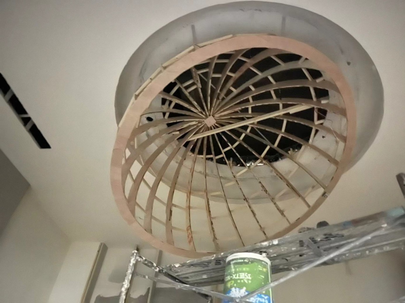 安装好吊顶按照灯光设计图让木工师傅开孔(避免后期打孔碰到龙骨)
