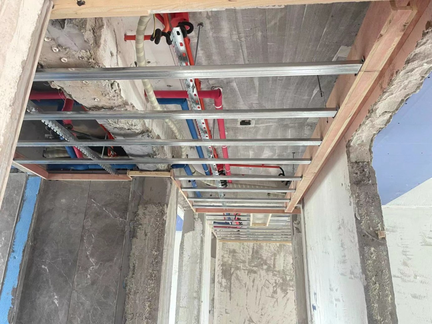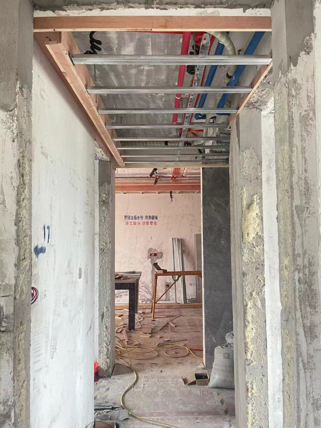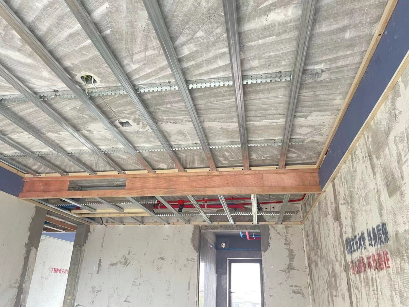 1.木工进场首先确认好做吊顶位置