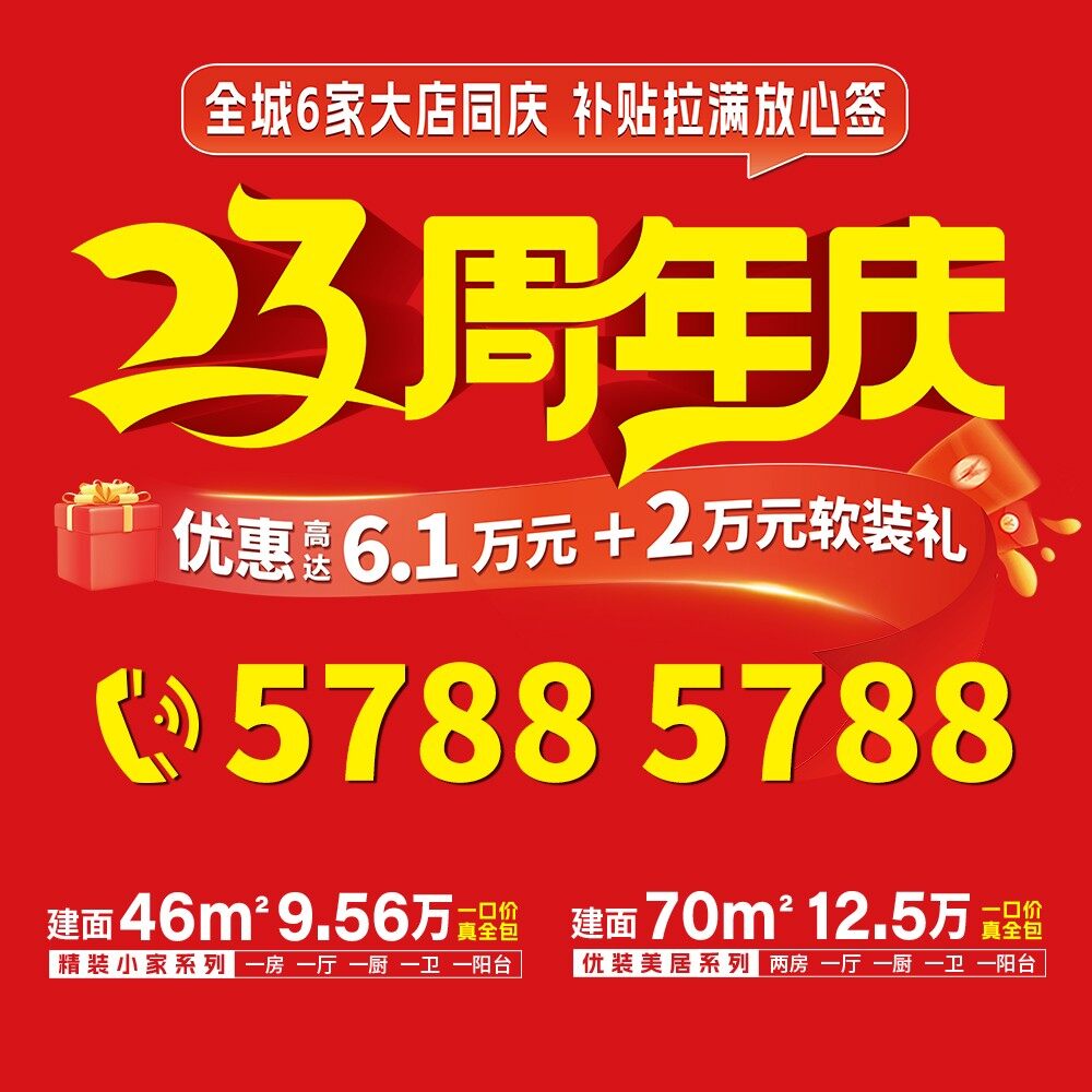云兰整装王23周年庆之际隆重推出重磅回馈:活动期间部分项目至高100%补贴,本次周年庆活动补贴优惠最高达61000元/户+20000元软装礼。赶紧拨打电话 5788 5788报名吧!