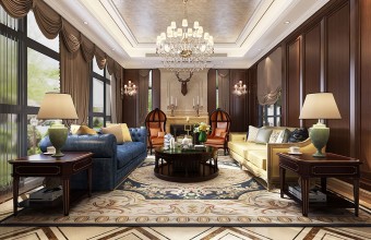 九龙仓兰宫别墅煮干休新中式混搭风格设计!-设计效果图